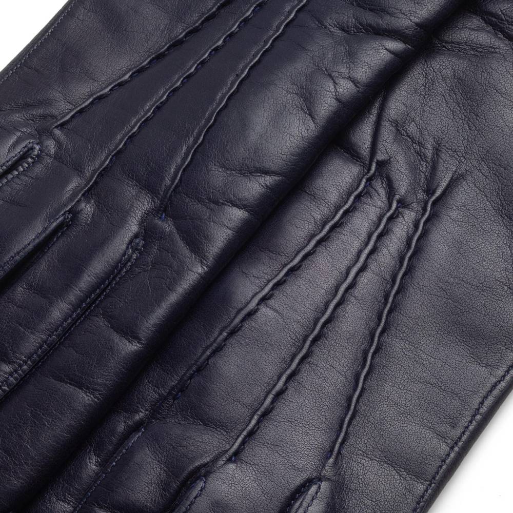 Элегантные женские перчатки Hestra чернильного цвета цвета. Обе перчатки имеют одинаковую текстуру, так как выполнены из одного отрезка уникальной овечьей кожи hairsheep, поставляемой из Эфиопии. Такая кожа отличается мягкостью, тонкой структурой и благородным блеском. К тому же она прочна и эластина, что обеспечивает прекрасную посадку по форме руки. С внешней стороны перчатки украшены фактурной тройной строчкой. Манжеты дополнены эластичной сборкой. Благодаря подкладке из тёплой итальянской шерсти, перчатки подойдут для осенней и зимней погоды с температурой до – 5 °С.
