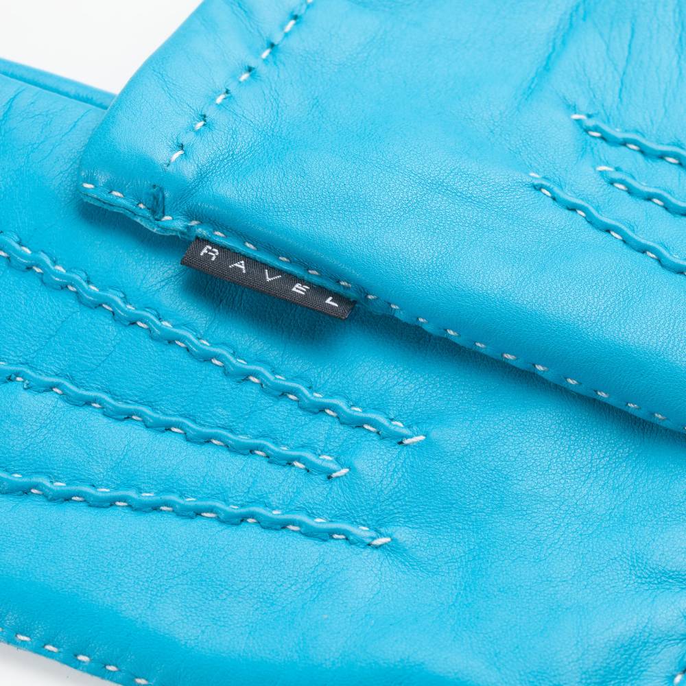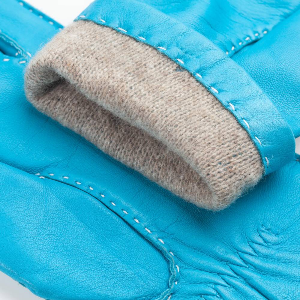 Элегантные женские перчатки от бренда Gaucho станут изысканным акцентом в вашем гардеробе. Модель выполнена из высококачественной кожи ягненка лазурного оттенка, которая отличается исключительной мягкостью, эластичностью и деликатным природным блеском. Особую ценность изделию придают наружные швы, прошитые вручную контрастной нитью. Эта трудоемкая ручная работа не только подчеркивает статус аксессуара, но и обеспечивает комфортную посадку, не ограничивающую движения пальцев. Внутри предусмотрена мягкая и теплая подкладка из натуральной шерсти, которая приятно прилегает к коже и обеспечивает оптимальный микроклимат в прохладные осенние и зимние дни.