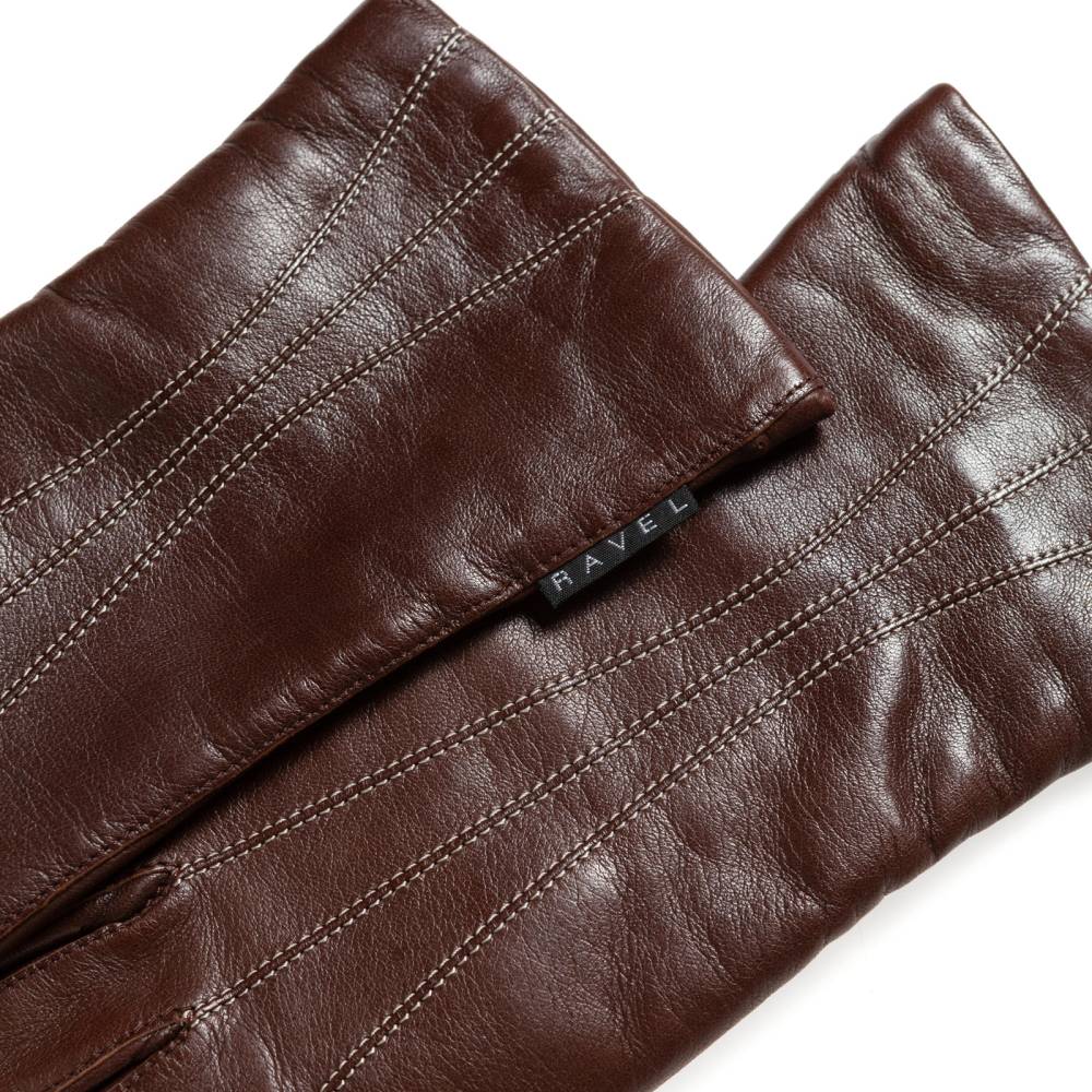 Элегантные женские перчатки Hestra коричневого цвета дополнены тремя контрастными швами на тыльной стороне ладони. Обе перчатки имеют одинаковую фактуру, так как выполнены из одного отрезка уникальной кожи ягнёнка, поставляемой из Эфиопии. Такая кожа отличается мягкостью, тонкой структурой и благородным блеском. К тому же она прочна и эластична, поэтому перчатки прекрасно садятся по руке. Для более комфортной посадки предусмотрена скрытая резинка на внутренней стороне запястья. Благодаря подкладке из тёплой итальянской шерсти, перчатки подойдут для осенней и зимней погоды с температурой до – 5 °С.