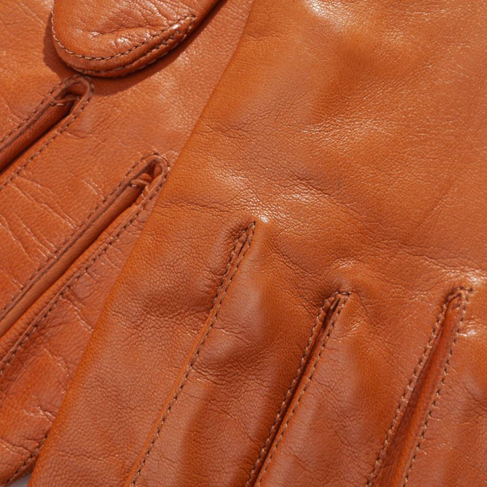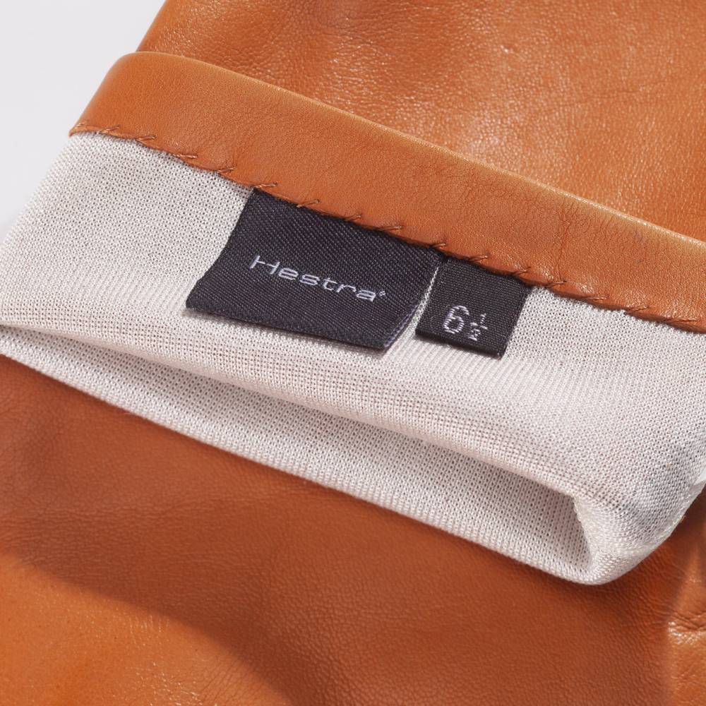 Классические женские перчатки Hestra светло-коричневого цвета. Обе перчатки имеют одинаковую текстуру, так как выполнены из одного отрезка уникальной овечьей кожи hairsheep, поставляемой из Эфиопии. Такая кожа отличается мягкостью, тонкой структурой и благородным блеском. К тому же она прочна и эластина, что обеспечивает прекрасную посадку по форме руки. Подкладка выполнена из чистого шёлка молочного оттенка. Модель подойдет для ранней осени, когда температура воздуха не ниже нуля.