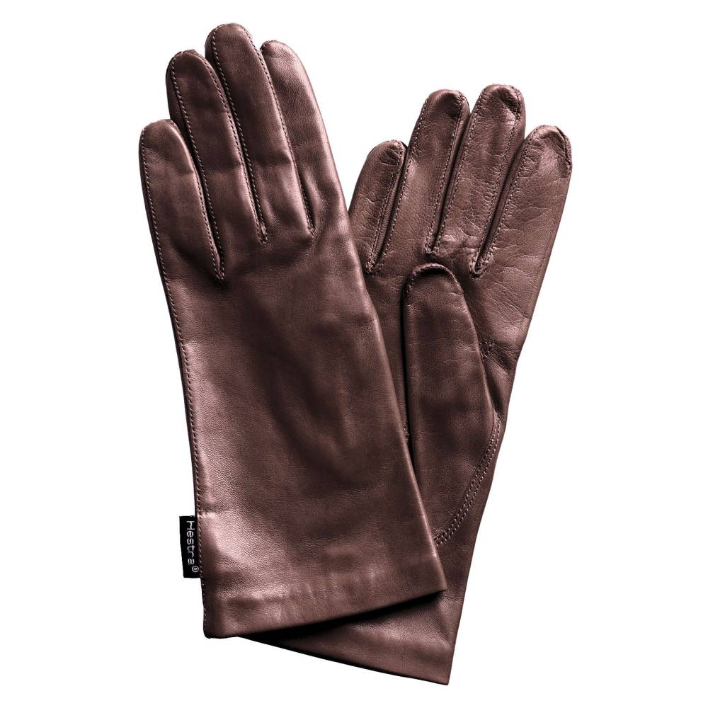 Классические женские перчатки Hestra тёмно-коричневого цвета. Обе перчатки имеют одинаковую текстуру, так как выполнены из одного отрезка уникальной овечьей кожи hairsheep, поставляемой из Эфиопии. Такая кожа отличается мягкостью, тонкой структурой и благородным блеском. К тому же она прочна и эластина, что обеспечивает прекрасную посадку по форме руки. Подкладка выполнена из чистого шёлка молочного оттенка. Модель подойдет для ранней осени, когда температура воздуха не ниже нуля.