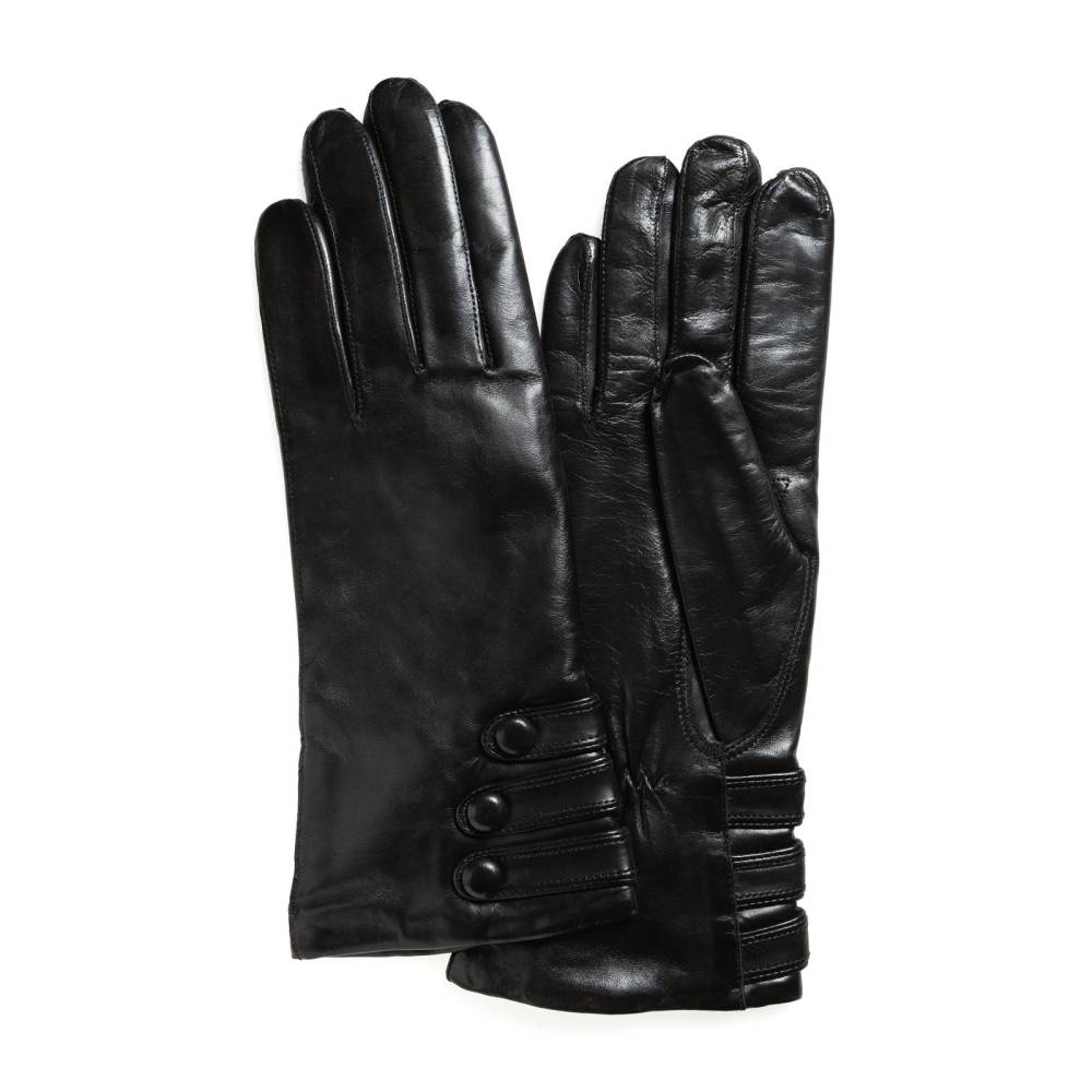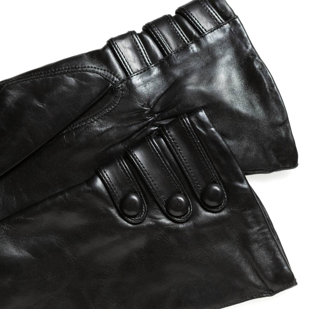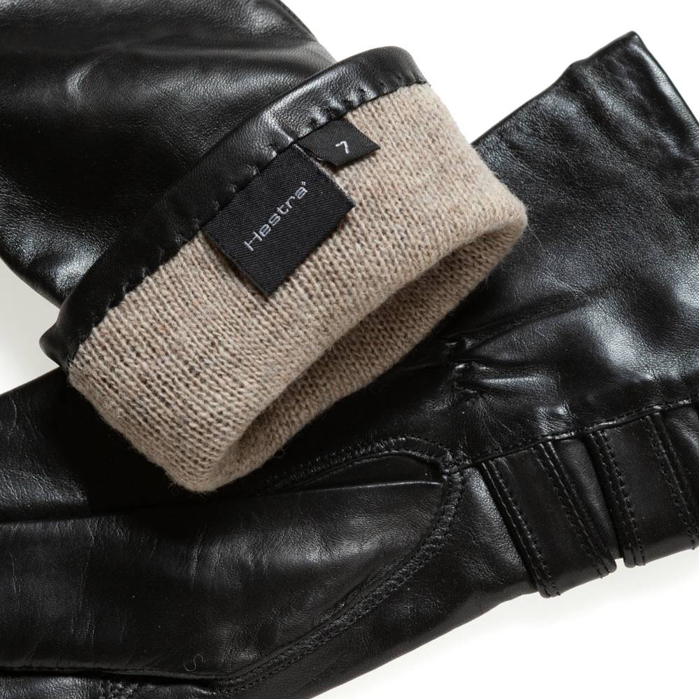 Классические женские перчатки Hestra чёрного цвета с тремя декоративными ремешками в области запястья. Обе перчатки имеют одинаковую фактуру, так как выполнены из одного отрезка уникальной кожи ягнёнка, поставляемой из Эфиопии. Такая кожа отличается мягкостью, тонкой структурой и благородным блеском. К тому же она прочна и эластична, поэтому перчатки из такой кожи прекрасно садятся по руке. Подкладка выполнена из чистого шёлка молочного оттенка. Модель подойдет для ранней осени, когда температура воздуха не ниже нуля.