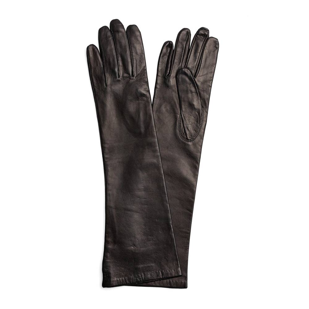 Элегантные длинные женские перчатки шведской марки Hestra для пальто и шуб с рукавом три четверти. Модель сшита из нежной, но прочной кожи ягнёнка чёрного цвета. Тонкая и приятная на ощупь подкладка выполнена из чистого шёлка. Эта модель отлично подойдет для прохладных осенних и зимних дней или вечерних выходов.