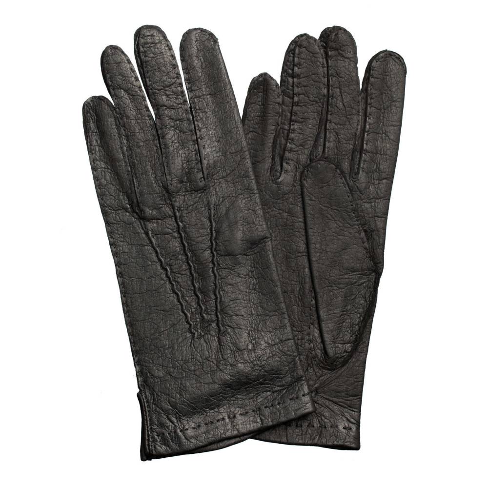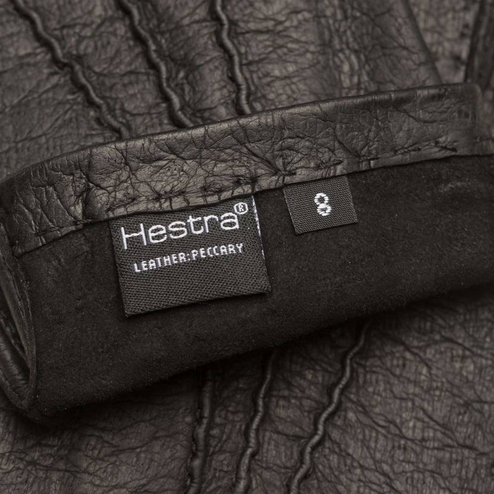 Тонкие элегантные мужские перчатки шведского бренда Hestra чёрного цвета. Модель из коллекции Table Cut вручную изготовлена из одного отрезка кожи пекари – дикого кабана, обитающего в джунглях Амазонки. Редкая и эксклюзивная кожа пекари обладает прекрасными изоляционными свойствами и характерным рисунком. Она не требует особого ухода и со временем, наоборот, становится только мягче и эластичнее, приобретая благородную патину. Так как перчатки не имеют подкладки, они лучше всего подходят для ранней осени и весны, когда температура не ниже нуля.