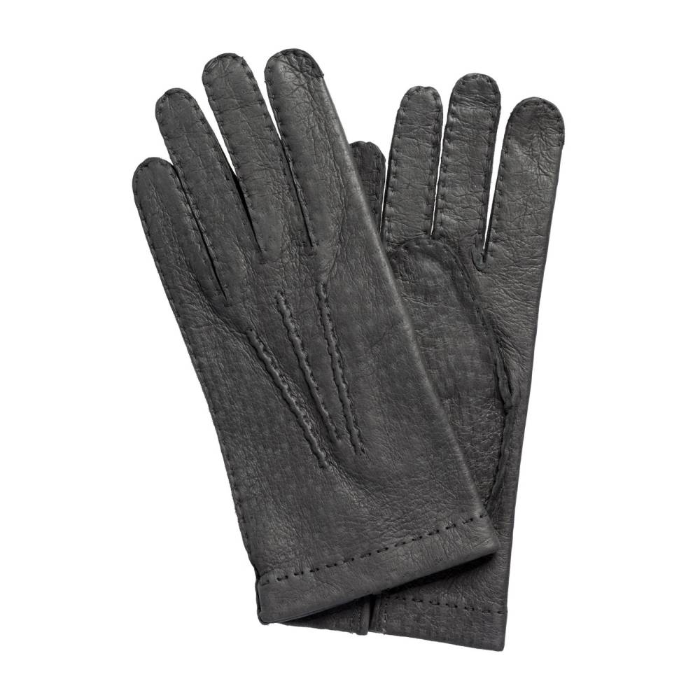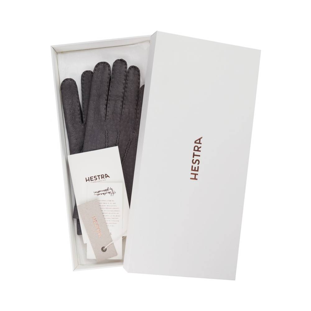 Тонкие элегантные мужские перчатки шведского бренда Hestra серого цвета. Модель из коллекции Table Cut вручную изготовлена из одного отрезка кожи пекари – дикого кабана, обитающего в джунглях Амазонки. Редкая и эксклюзивная кожа пекари обладает прекрасными изоляционными свойствами и характерным рисунком. Она не требует особого ухода и со временем, наоборот, становится только мягче и эластичнее, приобретая благородную патину. Так как перчатки не имеют подкладки, они лучше всего подходят для ранней осени и весны, когда температура не ниже нуля.