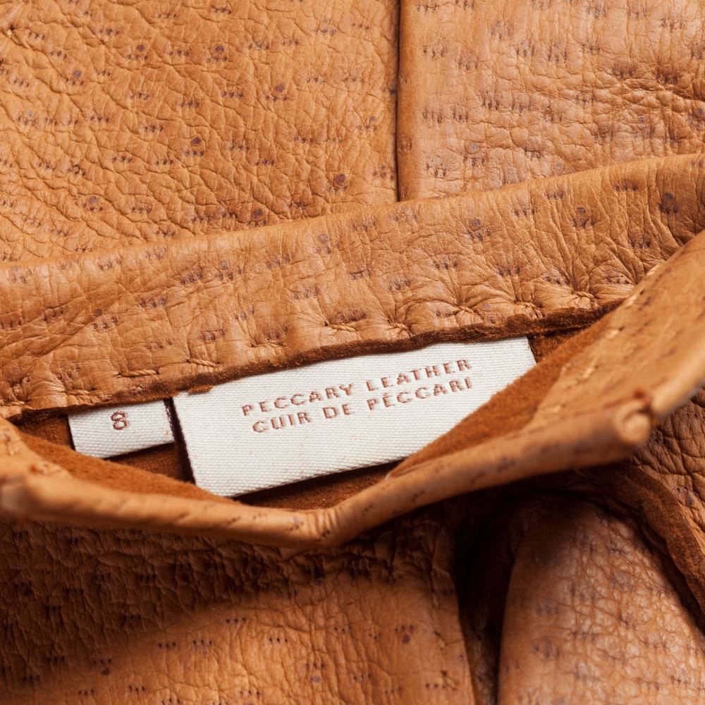 Тонкие элегантные мужские перчатки шведского бренда Hestra светло-коричневого цвета. Модель из коллекции Table Cut вручную изготовлена из одного отрезка кожи пекари – дикого кабана, обитающего в джунглях Амазонки. Редкая и эксклюзивная кожа пекари обладает прекрасными изоляционными свойствами и характерным рисунком. Она не требует особого ухода и со временем, наоборот, становится только мягче и эластичнее, приобретая благородную патину. Так как перчатки не имеют подкладки, они лучше всего подходят для ранней осени и весны, когда температура не ниже нуля.