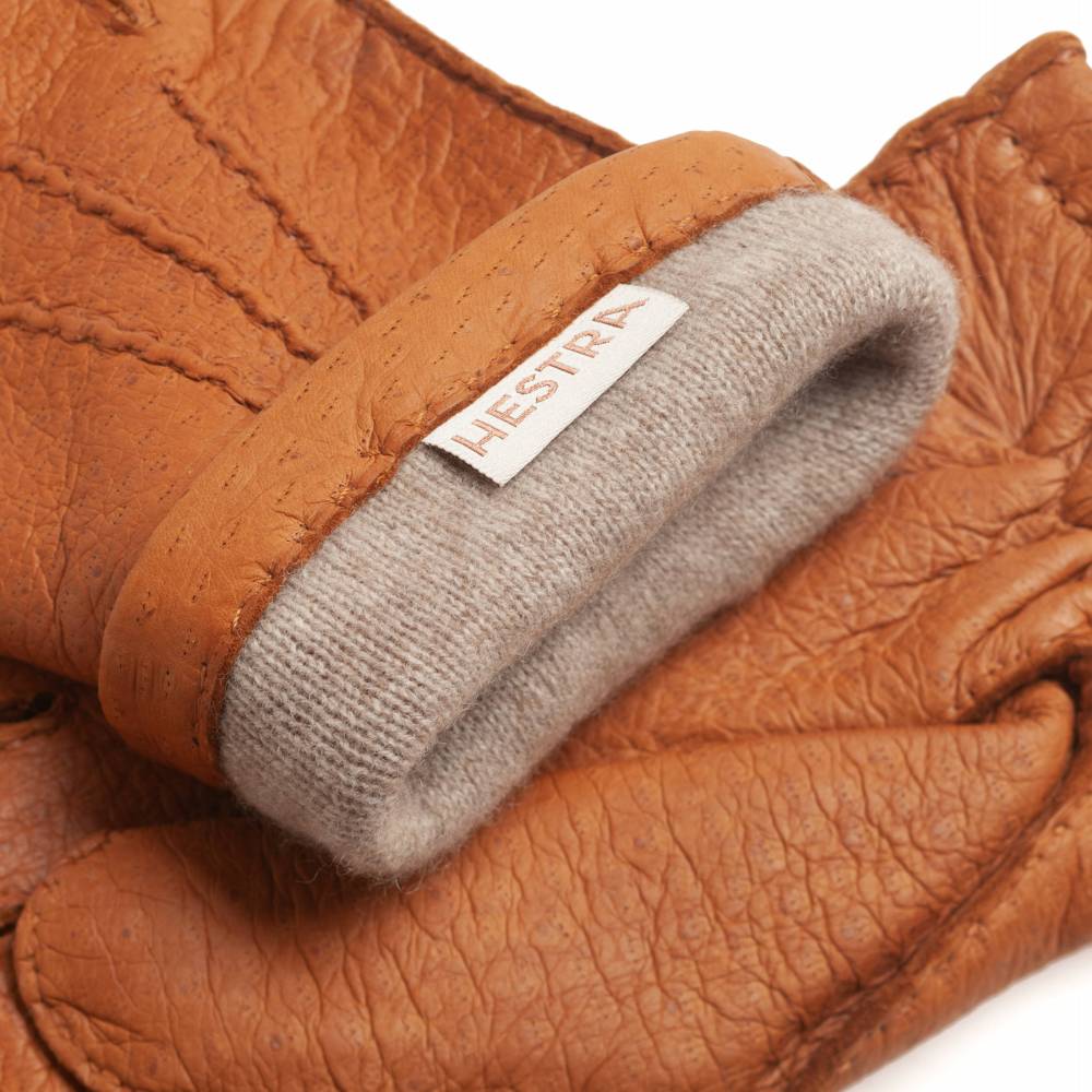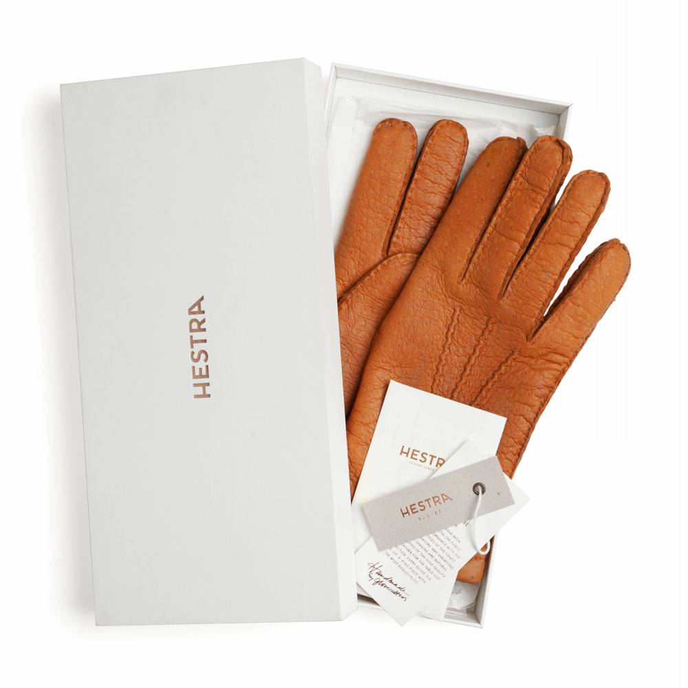 Классические мужские перчатки Hestra лаконичного дизайна. Модель из коллекции Table Cut вручную изготовлена из одного отрезка кожи пекари – дикого кабана, обитающего в джунглях Амазонки. Редкая и эксклюзивная кожа пекари обладает прекрасными изоляционными свойствами и характерным рисунком. Она не требует особого ухода и со временем, наоборот, становится только мягче и эластичнее, приобретая благородную патину. Подкладка выполнена из шерсти и мягкого итальянского кашемира. На внешней стороне перчаток вручную проложена тройная декоративная строчка. Модель предназначена для осенней и зимней погоды с температурой до - 15 °С. К перчаткам прилагается фирменная коробка.