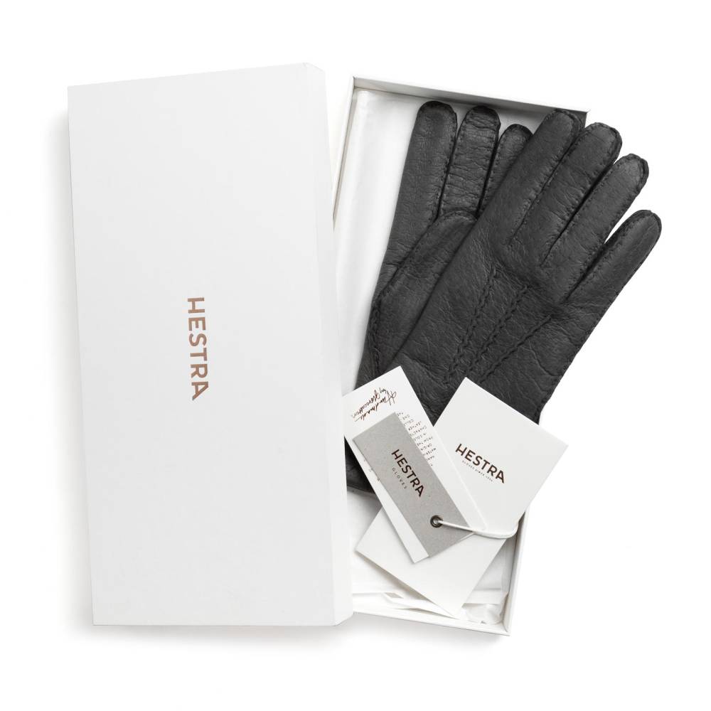 Классические мужские перчатки Hestra лаконичного дизайна. Модель из коллекции Table Cut вручную изготовлена из одного отрезка кожи пекари – дикого кабана, обитающего в джунглях Амазонки. Редкая и эксклюзивная кожа пекари обладает прекрасными изоляционными свойствами и характерным рисунком. Она не требует особого ухода и со временем, наоборот, становится только мягче и эластичнее, приобретая благородную патину. Подкладка выполнена из мягкого кашемира. На внешней стороне перчаток вручную проложена тройная декоративная строчка.