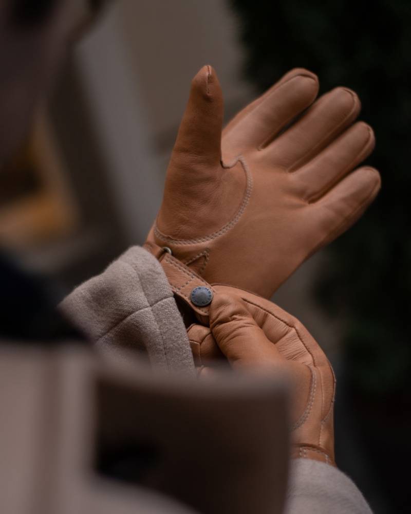 Тёплые мужские перчатки Hestra из коллекции Sport Classic созданы специально для длительного пребывания на открытом воздухе при минусовых температурах. С внешней стороны модель выполнена из мягкой, приятной на ощупь кожи оленя с великолепной зернистой текстурой светло-коричневого цвета, а с внутренней стороны имеет густой ворс из овчины. Область запястья регулируется при помощи ремешка с металлической кнопкой. Перчатки декорированы контрастной строчкой.