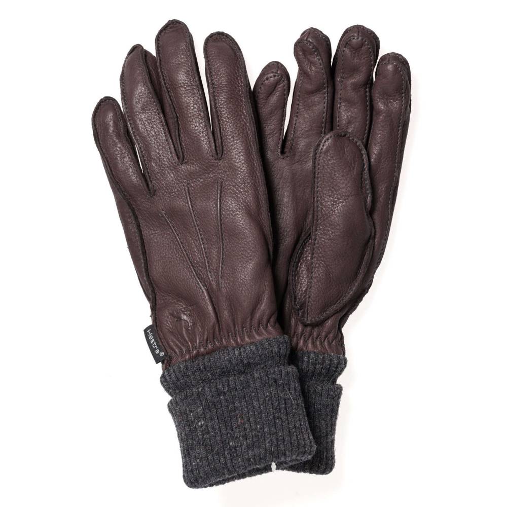 Тёплые мужские перчатки Hestra выполнены из кожи оленя тёмно-коричневого цвета на подкладке из ворсистого полиэстера Primaloft®. Кожа оленя мягкая и приятная на ощупь с ровной, красивой фактурой. Плотные широкие манжеты из натуральной шерсти и сборка в области запястья защищают руки от проникновения холодного ветра и мороза, сохраняя тепло. На внешней стороне перчаток проложены три декоративные строчки. Перчатки подойдут для осенней и зимней погоды с температурой до – 20 °С.