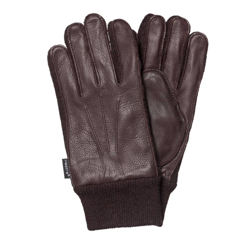 Лаконичные перчатки шведского бренда Hestra выполнены из тёмно-коричневой оленьей кожи на подкладке из ворсистого полиэстера Primaloft®. Кожа оленя ценится за прекрасные теплоизоляционные свойства, прочность и мягкость. Благодаря эластичным шерстяным манжетам, перчатки плотно облегают кисть, защищая руку от проникновения ветра. С внешней стороны проложена тройная декоративная строчка, а с внутренней - фактурные строчки для защиты от трения. Перчатки подойдут для осенней и зимней погоды с температурой до – 20 °С.