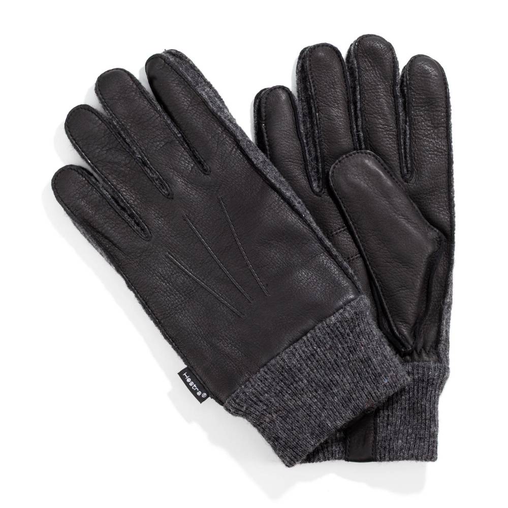 Лаконичные перчатки шведского бренда Hestra выполнены из чёрной оленьей кожи на подкладке из ворсистого полиэстера Primaloft®. Кожа оленя ценится за прекрасные теплоизоляционные свойства, прочность и мягкость. Благодаря эластичным шерстяным манжетам, перчатки плотно облегают кисть, защищая руку от проникновения ветра. С внешней стороны проложена тройная декоративная строчка, а с внутренней - фактурные строчки для защиты от трения. Перчатки подойдут для осенней и зимней погоды с температурой до – 20 °С.