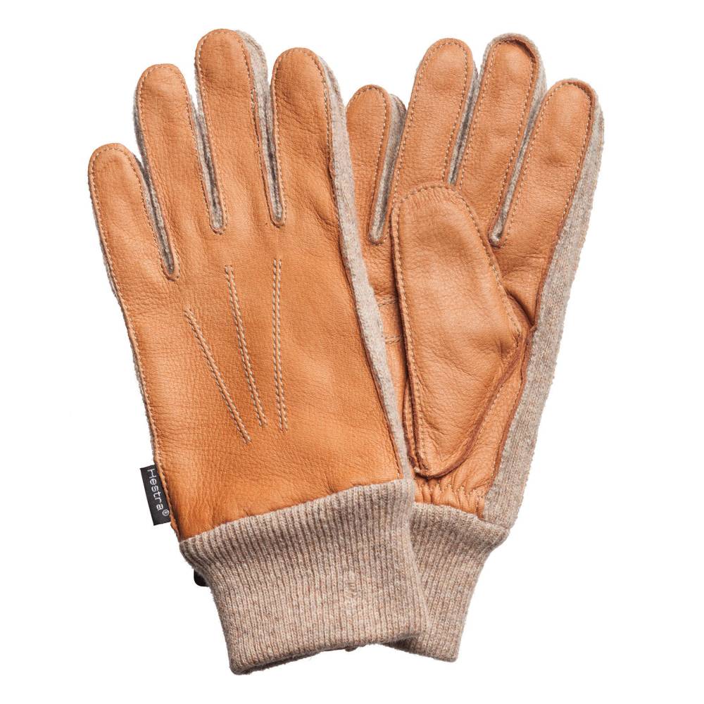 Лаконичные перчатки шведского бренда Hestra выполнены из светло-коричневой оленьей кожи на подкладке из ворсистого полиэстера Primaloft®. Кожа оленя ценится за прекрасные теплоизоляционные свойства, прочность и мягкость. Благодаря эластичным шерстяным манжетам, перчатки плотно облегают кисть, защищая руку от проникновения ветра. С внешней стороны проложена тройная декоративная строчка, а с внутренней - фактурные строчки для защиты от трения. Перчатки подойдут для осенней и зимней погоды с температурой до – 20 °С.