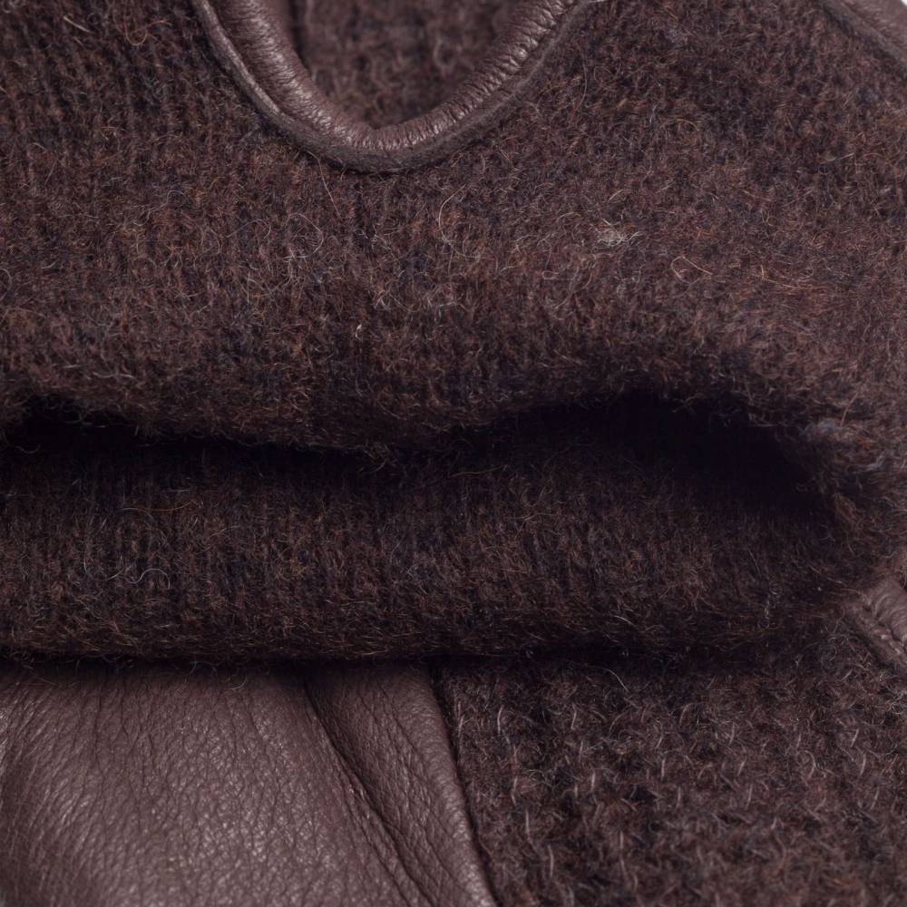 Мужские перчатки шведского бренда Hestra выполнены из тёмно-коричневой кожи североамериканского оленя в сочетании с шерстью. Прочная, приятная на ощупь оленья кожа обладает красивой зернистой структурой. Мягкая подкладка из мериносовой шерсти и полиамида прекрасно защищает от холода и ветра. V-образный вырез позволяет легко снимать и надевать перчатки. Модель предназначена для холодной осени и зимы.