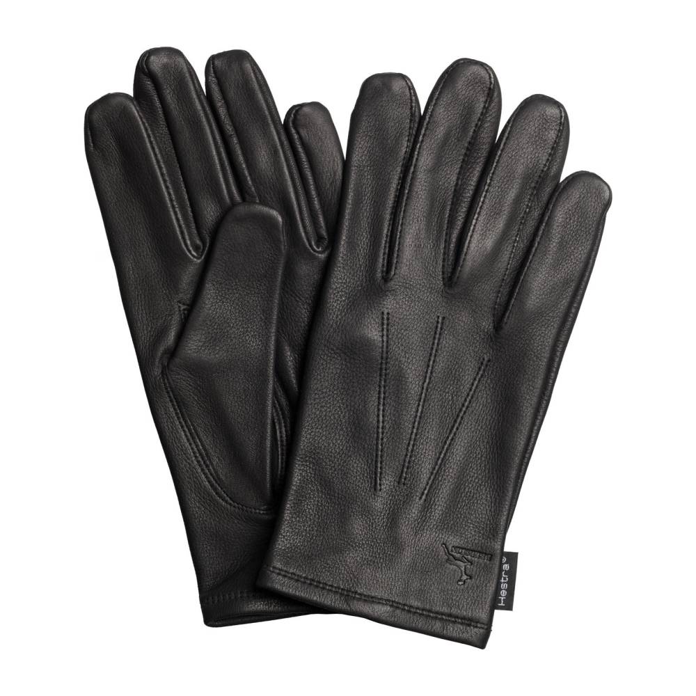 Классические мужские перчатки Hestra чёрного цвета. Модель выполнена из мягкой приятной на ощупь оленьей кожи. Область запястья дополнена эластичной сборкой и v-образным вырезом, что позволяет быстро и легко надевать перчатки. Подкладка выполнена из натурального шёлка. С внешней стороны перчатки украшены традиционной тройной строчкой. Подойдут для ранней осени и весны, когда температура воздуха не ниже нуля.