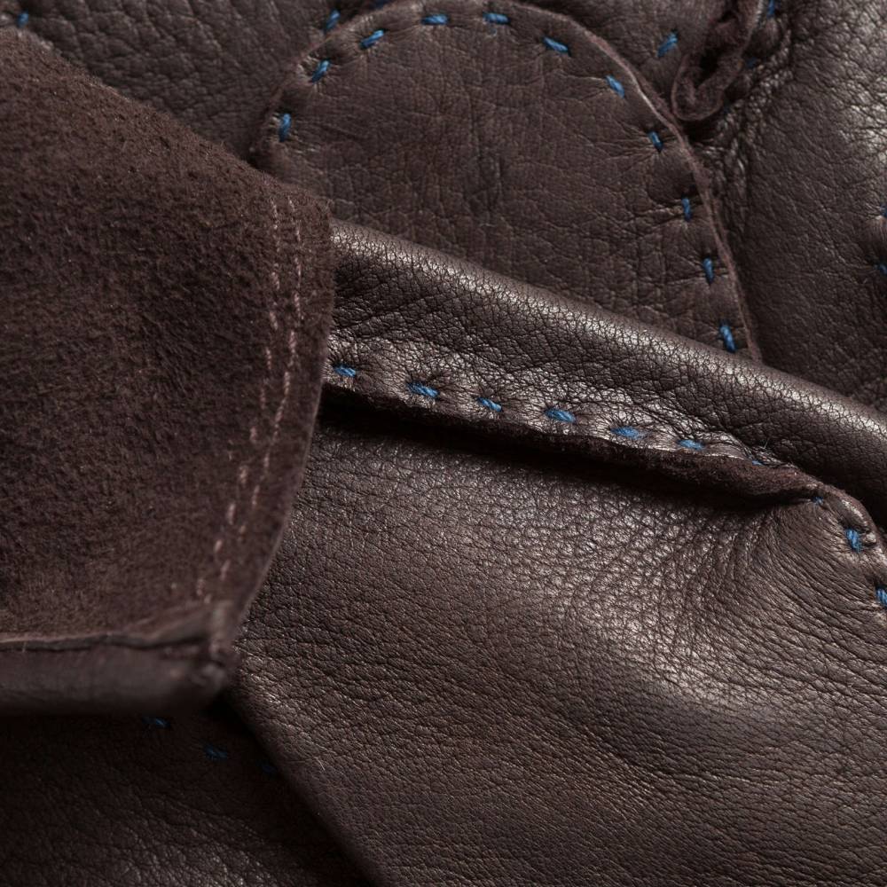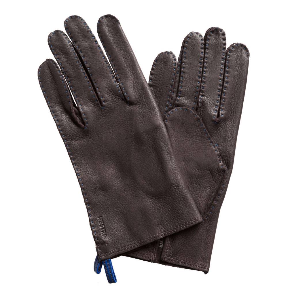 Тонкие мужские перчатки Jacob шведского бренда Hestra выполнены из мягкой, приятной на ощупь кожи оленя тёмно-коричневого цвета. Область запястья дополнена V-образным вырезом, который позволяет быстро и легко надевать перчатки. Так как модель не имеет подкладки, она лучше всего подходит для ранней осени и весны, когда температура не ниже нуля. Перчатки декорированы контрастной строчкой.