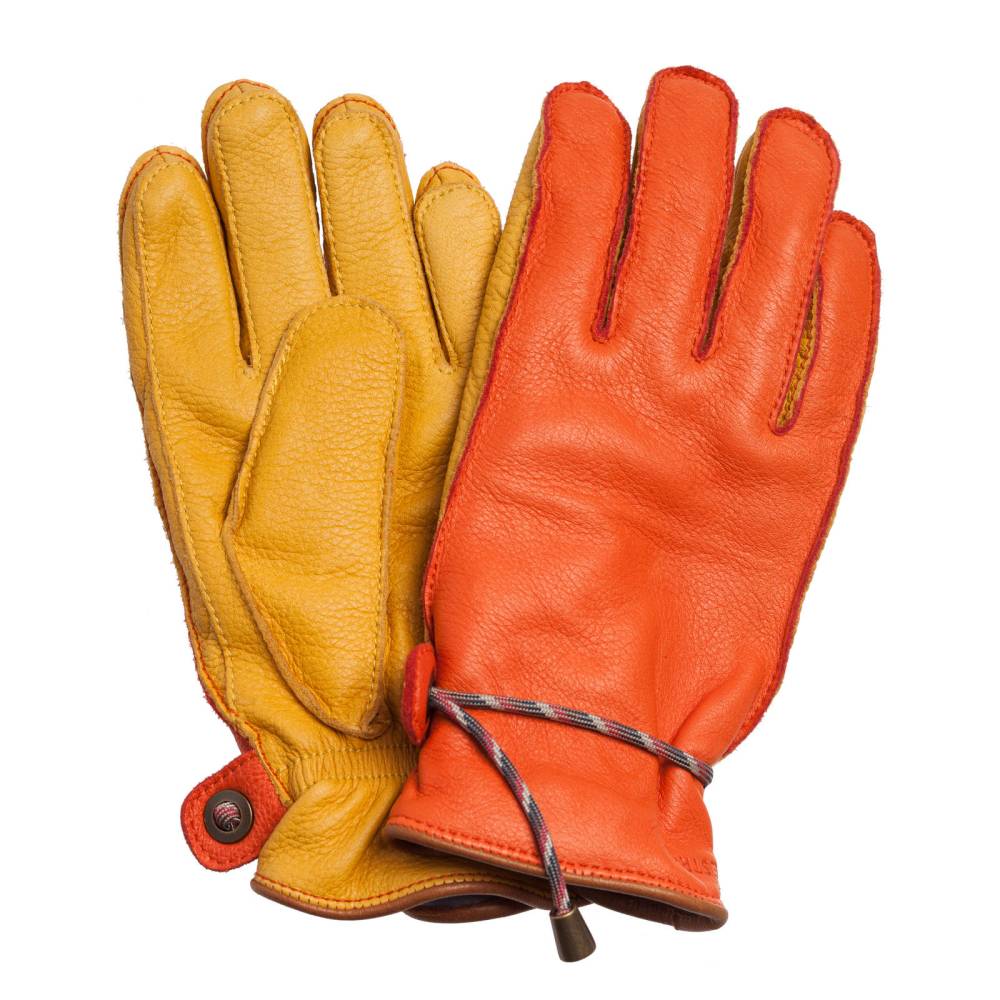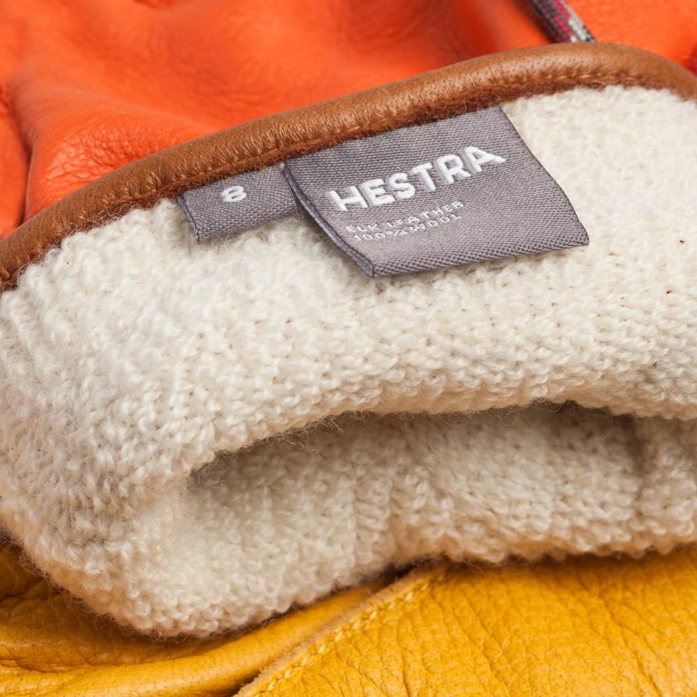 Оригинальные перчатки Granvik из коллекции Sport Classic шведского бренда Hestra. Модель выполнена из кожи лося жёлтого и оранжевого цвета. Кожа лося обладает красивой текстурой и прекрасными изолирующими и водоотталкивающими свойствами. Особенностью перчаток является очень тёплая износостойкая шерстяная подкладка Wool Terry, напоминающая махровую ткань. Область запястья стягивается эластичной резинкой. Перчатки походят для длительного пребывания на улице при температуре до -40ºС.