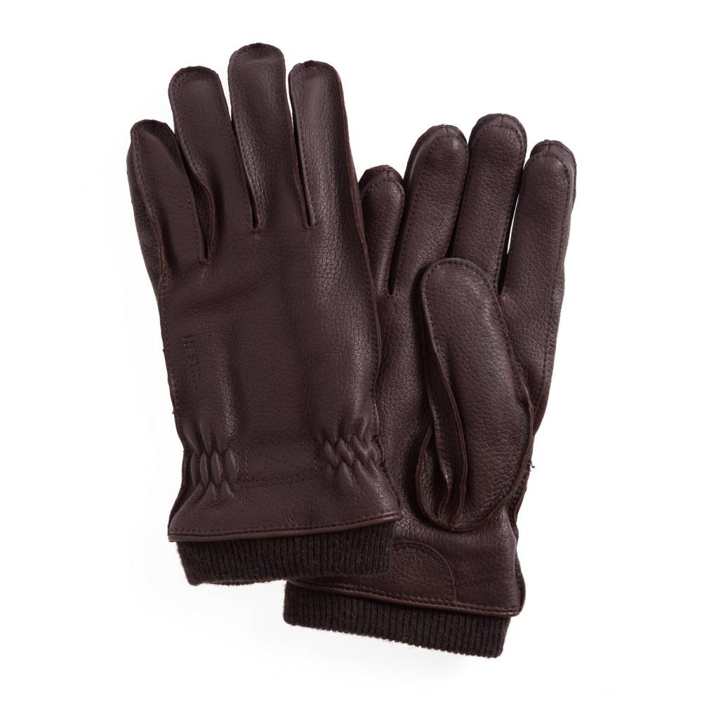 Тёмно-коричневые мужские перчатки Hestra Malte из прочной и долговечной кожи лося созданы специально для длительного пребывания на открытом воздухе при минусовых температурах в городских условиях и за городом. Подкладка из мягкого ворсистого полиэстера с утеплителем Primaloft™ защищает от проникновения ветра и сохраняет тепло. В области запястья имеется эластичная сборка, которая позволяет легко надевать и снимать перчатки, и вязаная манжета из тёплой овечьей шерсти. Отличительная особенность данной модели — специальный анатомический крой, повторяющий изгибы кисти.