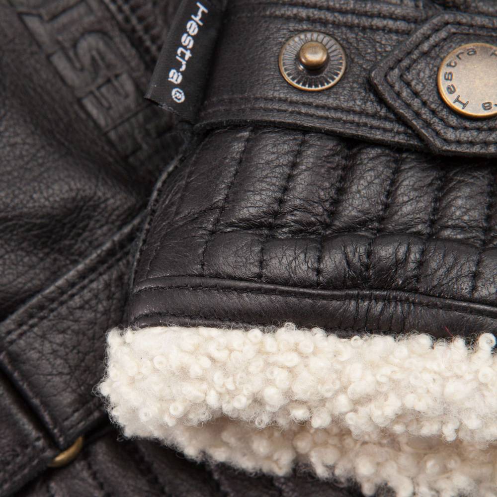 Тёплые мужские перчатки Hestra из коллекции Sport Classic созданы специально для длительного пребывания на открытом воздухе при минусовой температуре. С внешней стороны модель выполнена из мягкой и прочной кожи скандинавского лося с зернистой текстурой чёрного цвета, а с внутренней стороны отделана густым овечьим мехом. Область запястья регулируется в двух положениях при помощи ремешка с металлической кнопкой. Перчатки подойдут для погоды с температурой до – 25 °С.