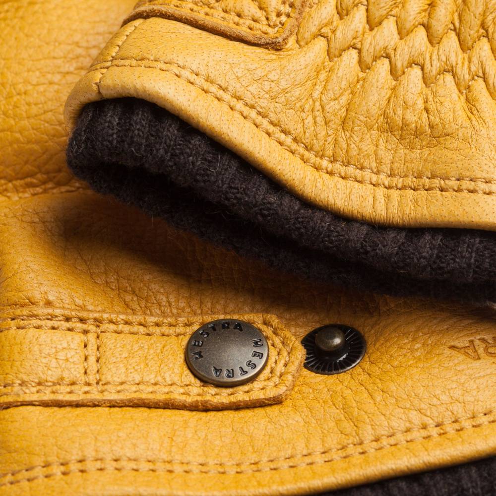 Тёплые мужские перчатки жёлтого цвета из коллекции Sport Classic шведского бренда Hestra. Выполнены из прочной, эластичной кожи скандинавского лося. Модель дополнена вязаным шерстяным манжетом. Подкладка выполнена из мягкого водонепроницаемого утеплителя Primaloft® на основе полиэстера. Объём запястья можно регулировать ремешком на кнопке. Перчатки подходят для занятий спортом и длительных прогулок при температуре до -25ºС.