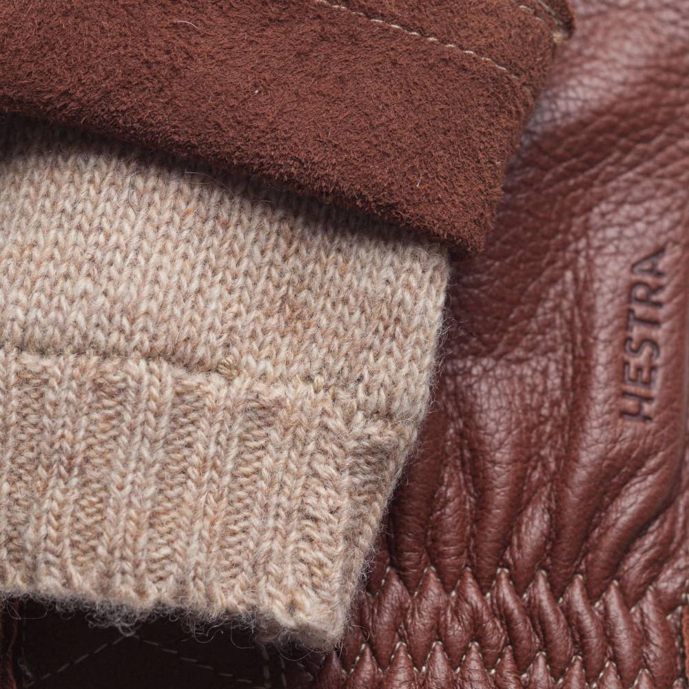 Тёплые перчатки Gagnef из коллекции Sport Classic шведского бренда Hestra выполнены из кожи лося коричневого цвета на шерстяной подкладке. Прочная и износостойкая кожа лося обладает красивой и ровной текстурой, а мягкая, приятная на ощупь итальянская шерсть надёжно защищает от холода и ветра. Манжеты подкладки и сборка в области запястья обеспечивают плотную посадку на руке. Модель идеально подходит для прогулок и активного отдыха в осеннюю и зимнюю погоду.