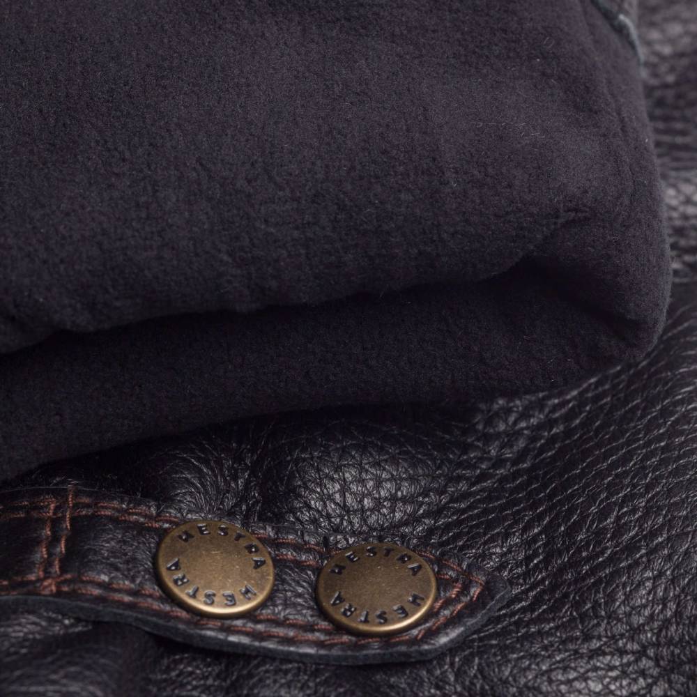 Тёплые мужские перчатки для активного отдыха из коллекции Sport Classic шведского бренда Hestra. Модель выполнена из прочной кожи лося чёрного цвета, обладающей прекрасными изоляционными свойствами и красивой зернистой структурой. Плотная флисовая подкладка защищает от ветра и холода, хорошо впитывает влагу и быстро высыхает, надёжно сохраняя тепло. Модель дополнена тройной декоративной строчкой на внешней стороне и тройной строчкой на внутренней стороне для защиты от трения. Область запястья регулируется ремешком с кнопками. Модель предназначена для холодной осени и зимы.