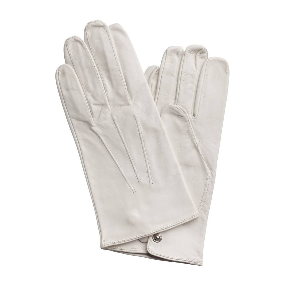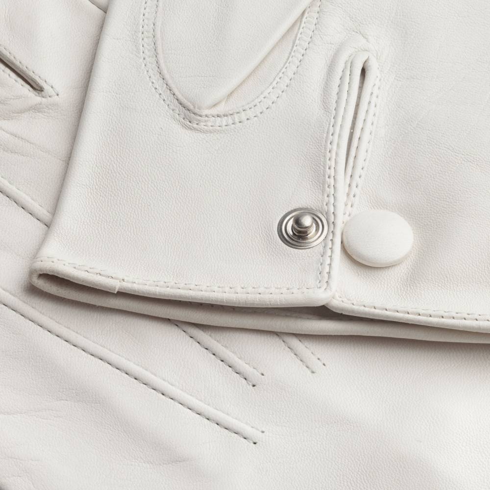 Строгие белые перчатки Hestra из коллекции Table Cut вручную выкроены из одного отрезка кожи ягнёнка без подкладки. На внешней стороне перчаток проложена тройная декоративная строчка. Поскольку данная модель — самая строгая, все швы выполнены максимально сдержанным и незаметным образом и проложены на машинке. Для более комфортной и красивой посадки в области запястья имеется удобная застёжка в виде кнопки: она фиксирует перчатки ничуть не хуже пуговицы, но в носке намного удобнее. Такая модель будет незаменима при парадной форме или фраке.