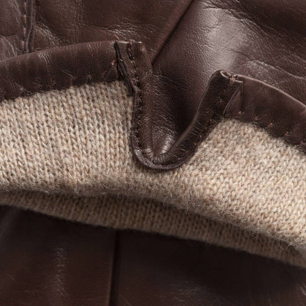 Классические мужские перчатки Hestra из коллекции Table Cut лаконичного дизайна. Модель вручную изготовлена из овечьей кожи растительного дубления (без применения хрома). Кожа отличается мягкостью, тонкой структурой, благородным блеском и отвечает самым высоким экологическим стандартам. К тому же она прочна и эластина, что обеспечивает прекрасную посадку по форме руки. Подкладка выполнена из тёплой итальянской шерсти бежевого оттенка. С внешней стороны модель декорирована тройной строчкой. Перчатки подойдут для осенней и зимней погоды с температурой до – 5 °С.