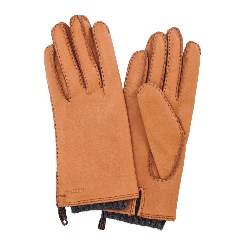 Тёплые мужские перчатки Tony шведского бренда Hestra выполнены из мягкой, приятной на ощупь оленьей кожи светло-коричневого цвета. Область запястья дополнена V-образным вырезом, который позволяет быстро и легко надевать перчатки. Подкладка выполнена из натуральной шерсти. Модель подойдёт для осенней и зимней погоды с температурой до – 5 °С.