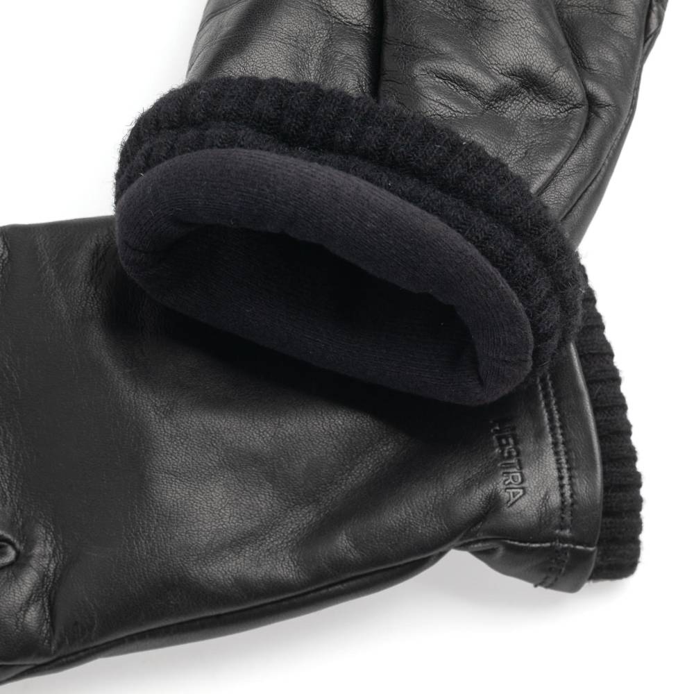 Чёрные мужские перчатки Hestra John из кожи ягнёнка, обработанной водоотталкивающими пропитками, созданы специально для длительного пребывания на открытом воздухе при минусовых температурах в городских условиях и за городом. Подкладка из мягкого ворсистого полиэстера с утеплителем Primaloft™ защищает от проникновения ветра и сохраняет тепло. В области запястья имеется эластичная сборка, которая позволяет легко надевать и снимать перчатки. Отличительные особенности данной модели — специальный анатомический крой, повторяющий изгибы кисти, и предназначенные для работы с сенсорными экранами накладки на больших и указательных пальцах.