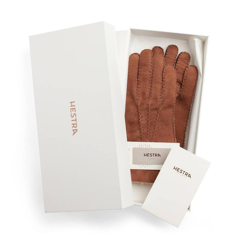 Тёплые перчатки светло-коричневого цвета из премиальной коллекции Table Cut шведского бренда Hestra. Модель выполнена из цельного отрезка овчины и сочетает в себе роскошь, функциональность и вневременной дизайн. Внутри натуральный ворс, а с внешней стороны – мягкая бархатистая замша. Перчатки кроятся и шьются вручную в мастерской Hestra в Венгрии. Традиционная технология Table Cut гарантирует идеальную посадку, эластичность и долговечность изделия. Манжету можно сложить, чтобы продемонстрировать пушистую меховую отделку или обеспечить дополнительную защиту запястья.