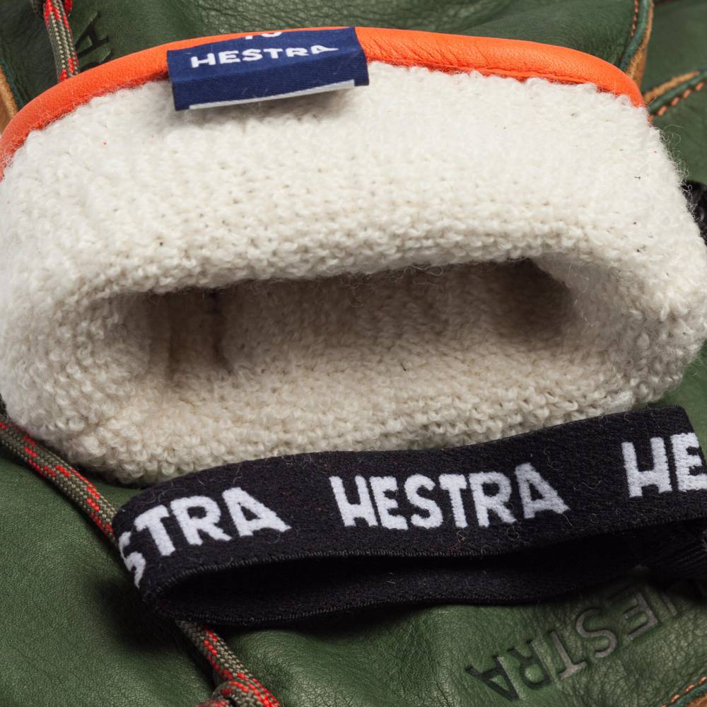 Повседневные городские перчатки Wakayama из коллекции Sport Classic шведского бренда Hestra. Для производства этой модели использовалась мягкая матовая воловья кожа светло-коричневого и зелёного цвета. Особенностью перчаток является очень тёплая износостойкая шерстяная подкладка Wool Terry, напоминающая махровую ткань. Область запястья стягивается эластичной резинкой. Перчатки подходят для длительного пребывания на улице при температуре до -40ºС. К перчаткам прилагается бальзам для ухода за кожей.