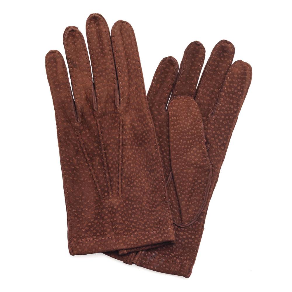 Мужские классические перчатки из кожи капибары тёмно-коричневого цвета без подкладки. Бархатистая текстура и пятнистый окрас этого материла особенно ценится среди поклонников перчаток по всему миру! Кожа этого животного очень прочная и износоустойчивая, но одновременно мягкая и приятная на ощупь. Перчатки сделаны в Италии по специальному заказу для испанского бренда La Portegna.