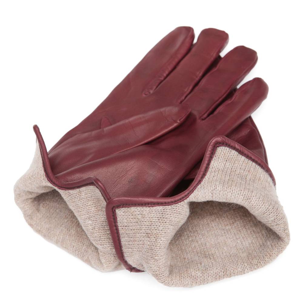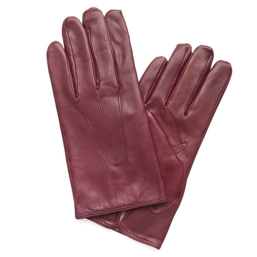 Мужские осенние перчатки итальянской компании Merola. С внешней стороны модель выполнена из мягкой эластичной кожи наппа бордового оттенка. Подкладка из бежевого кашемира.