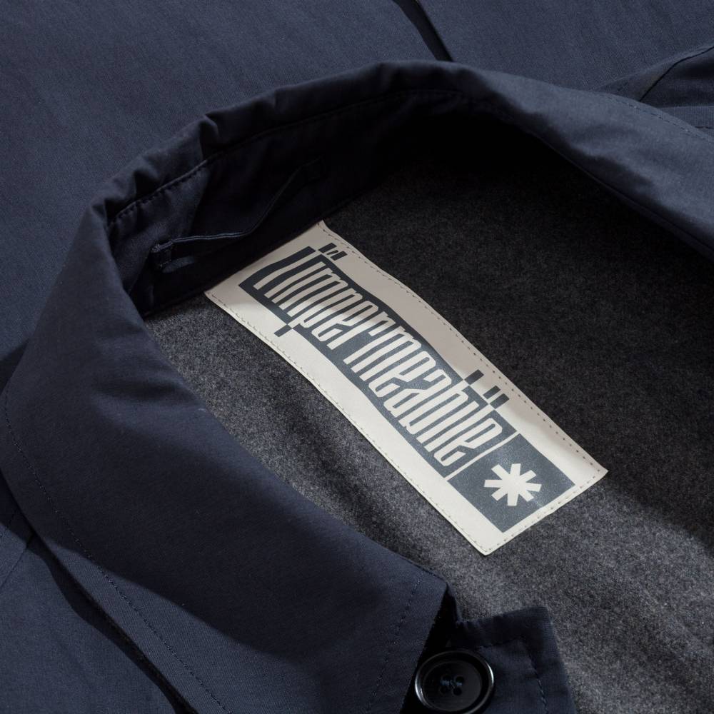Одна из самых знаковых и узнаваемых моделей итальянского бренда L`Impermeabile, тёмно-синий мужской плащ Kamikadze.