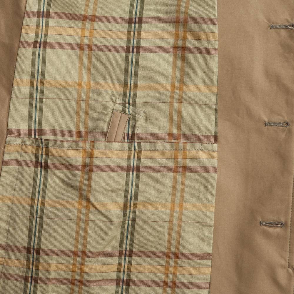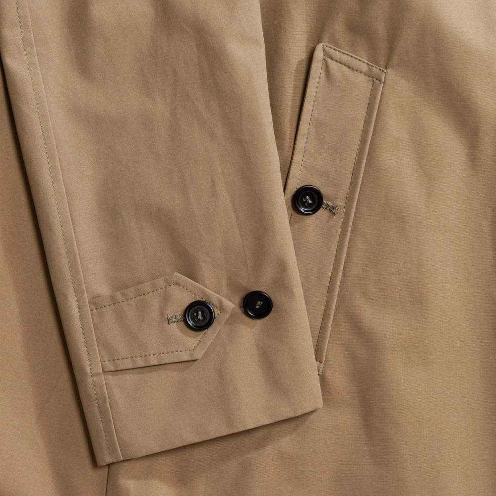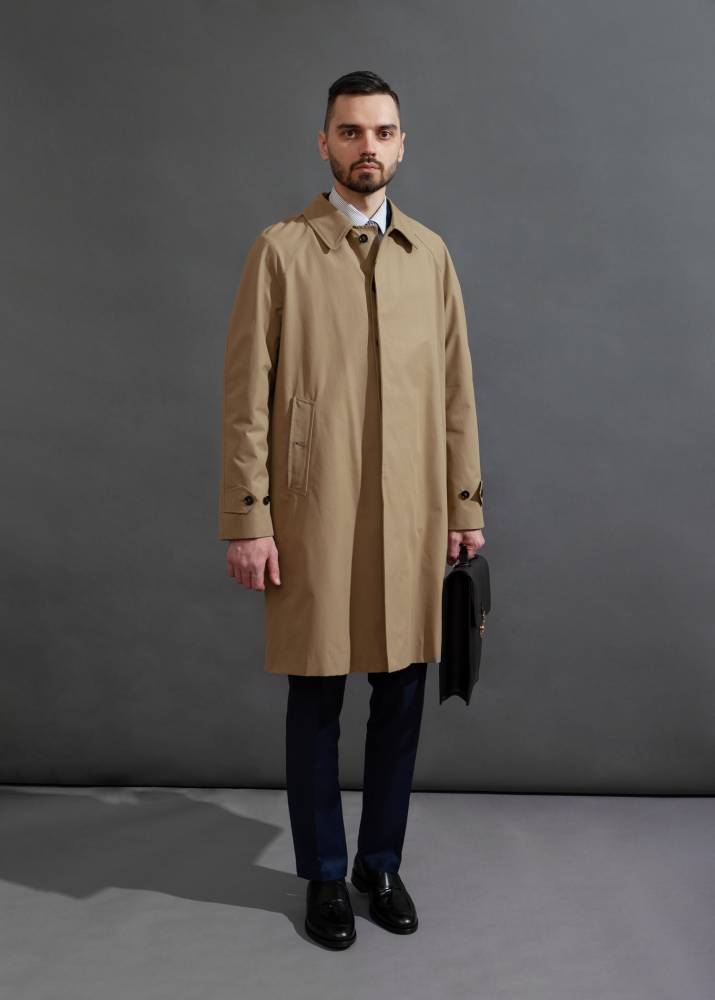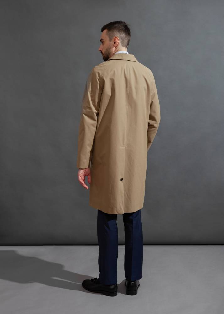 Бежевый мужской плащ итальянского бренда L`Impermeabile. Модель сшита из 100% хлопкового габардина. Эта ткань, изобретённая Томасом Бёрберри в 1859 году, отличается плотностью, прочностью и влагостойкостью, оставаясь при этом воздухопроницаемой. Диагональное переплетение нитей делает её идеальным выбором для лёгких и практичных плащей. Универсальная и практичная модель просторного, комфортного кроя не стеснит движений и удачно впишется практически в любой образ. Рукав реглан. Глубокие карманы застёгиваются на пуговицы. Пуговицы выполнены из качественного полимера, имитирующего рог.