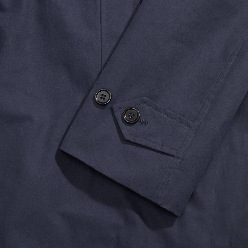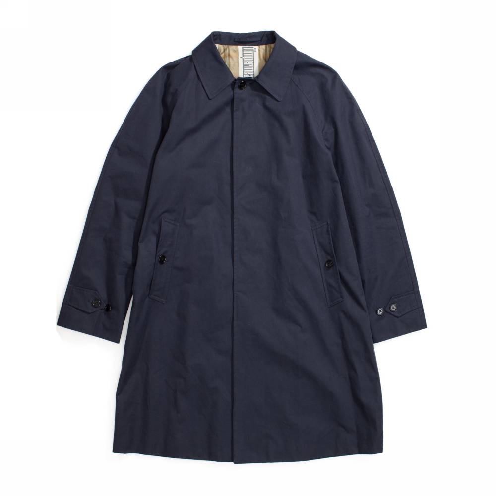Тёмно-синий мужской плащ итальянского бренда L`Impermeabile. Модель сшита из 100% хлопкового габардина (ткани очень плотного переплетения). Универсальная и практичная модель просторного, комфортного кроя не стеснит движений и удачно впишется практически в любой образ. Рукав реглан. Глубокие карманы застёгиваются на пуговицы. Пуговицы выполнены из качественного полимера, имитирующего рог.