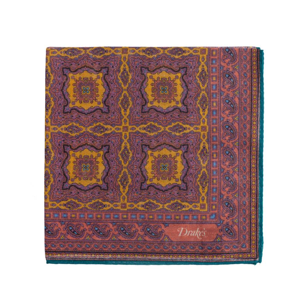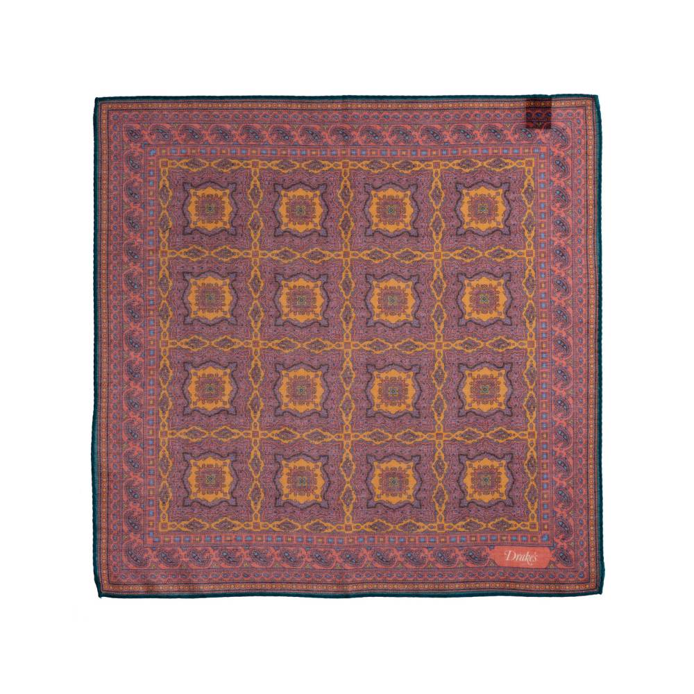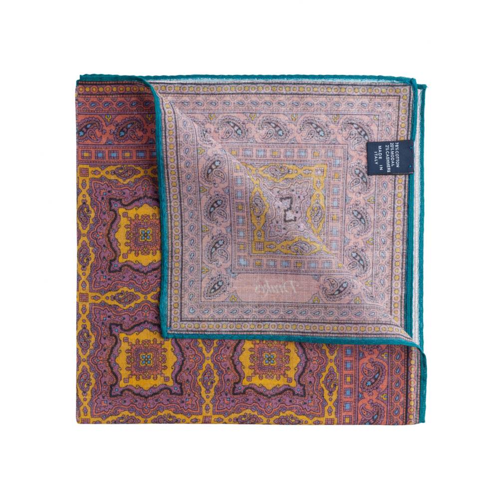 Элегантный мужской карманный платок в сиреневой цветовой гамме с орнаментом в восточном стиле. Выполнен из легчайшей итальянской ткани, в состав которой входят хлопок и модал с добавлением кашемира, благодаря чему платок хорошо драпируется и держит нужную форму, добавляя изысканный акцент практически в любой образ. Сделан в Италии.