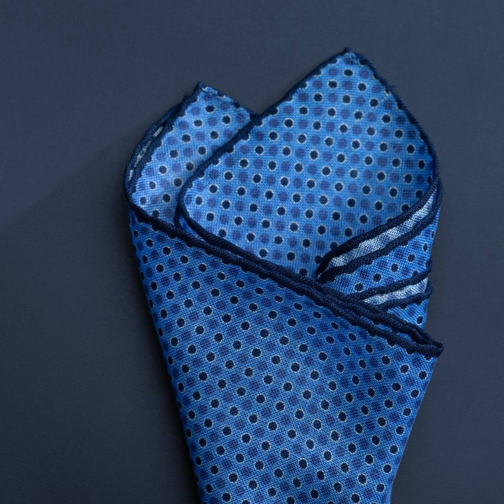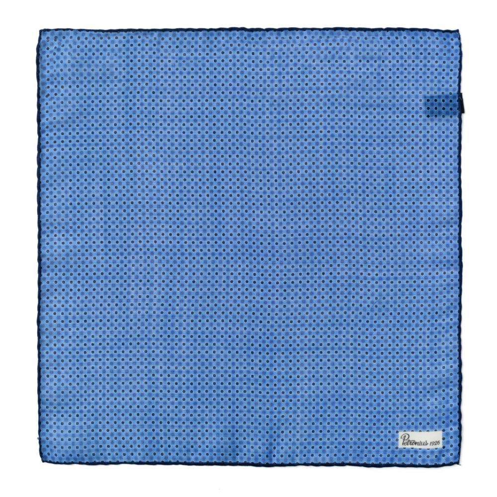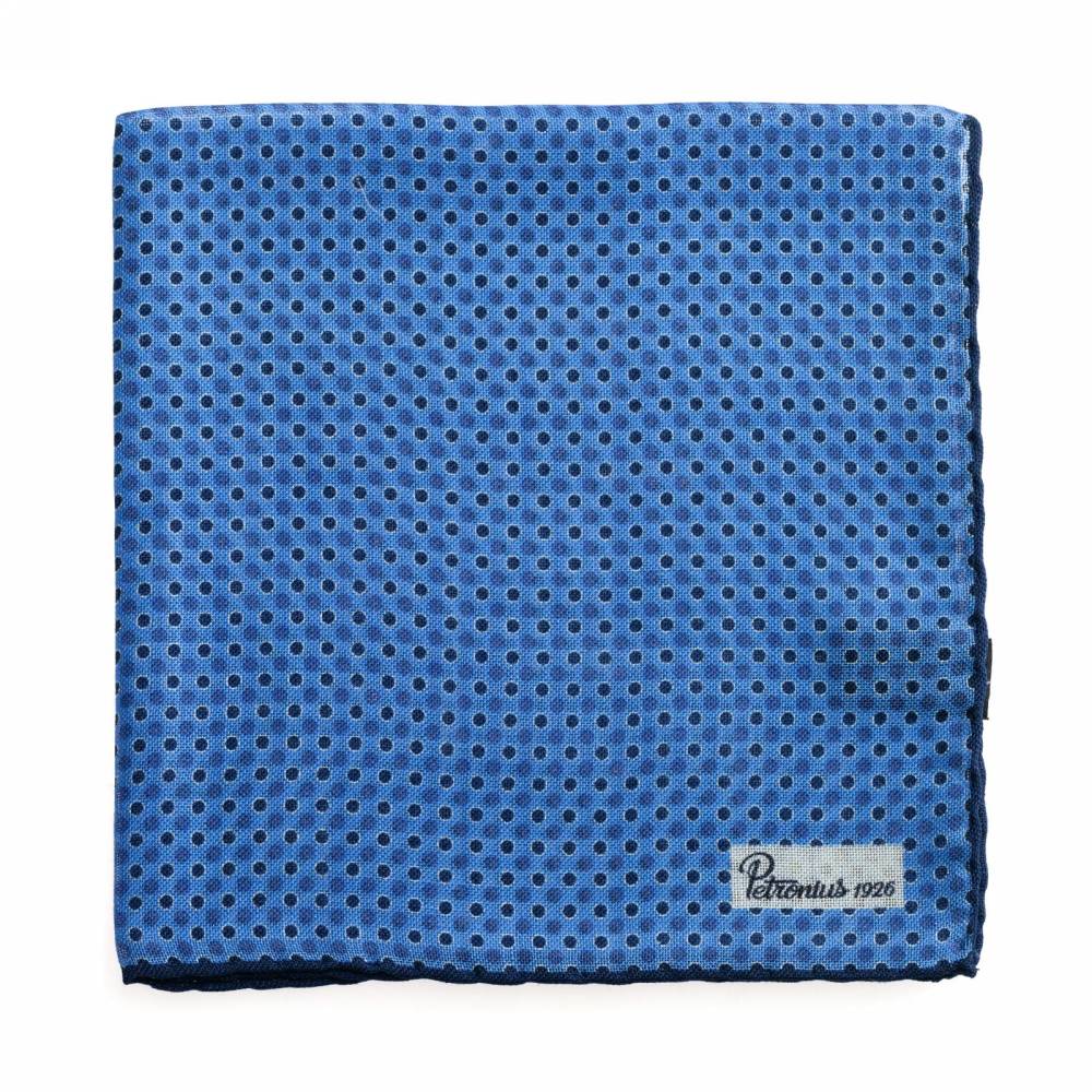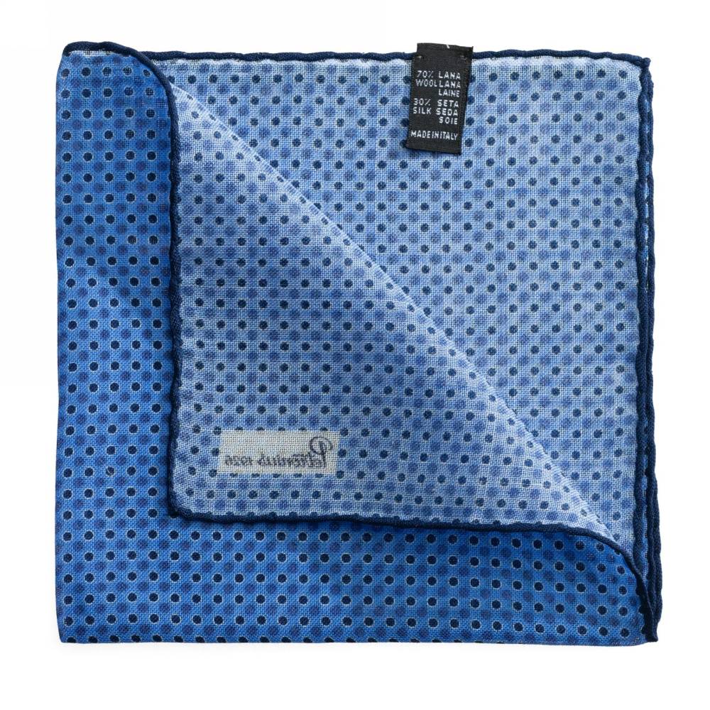 Элегантный карманный платок Petronius 1926 в синей цветовой гамме. Выполнен из лёгкой итальянской ткани, в состав которой входят шерсть и шёлк. Благодаря такому сочетанию материалов платок хорошо драпируется и держит нужную форму, добавляя изысканный акцент практически в любой образ. Ручная обработка по краю.