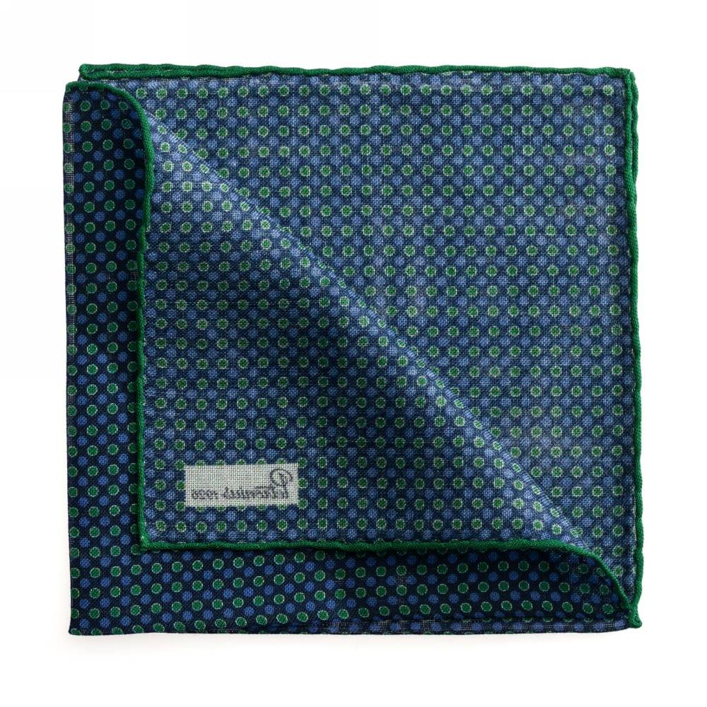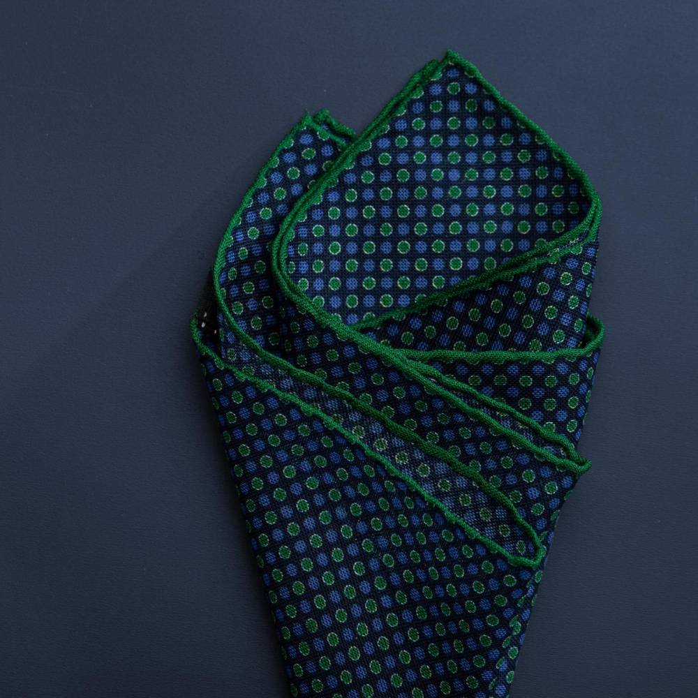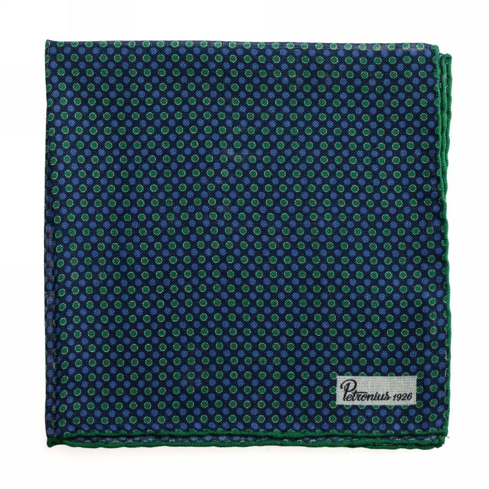 Элегантный карманный платок Petronius 1926 в тёмно-синей цветовой гамме. Выполнен из лёгкой итальянской ткани, в состав которой входят шерсть и шёлк. Благодаря такому сочетанию материалов платок хорошо драпируется и держит нужную форму, добавляя изысканный акцент практически в любой образ. Ручная обработка по краю.