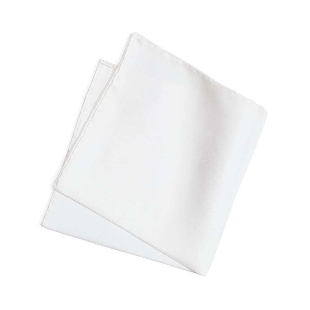 Белый карманный платок (платок-паше) из чистого шёлка итальянской марки Petronius. Такой платок станет эффектным завершением строгий деловой или торжественного образа. Края платка подшиты вручную.