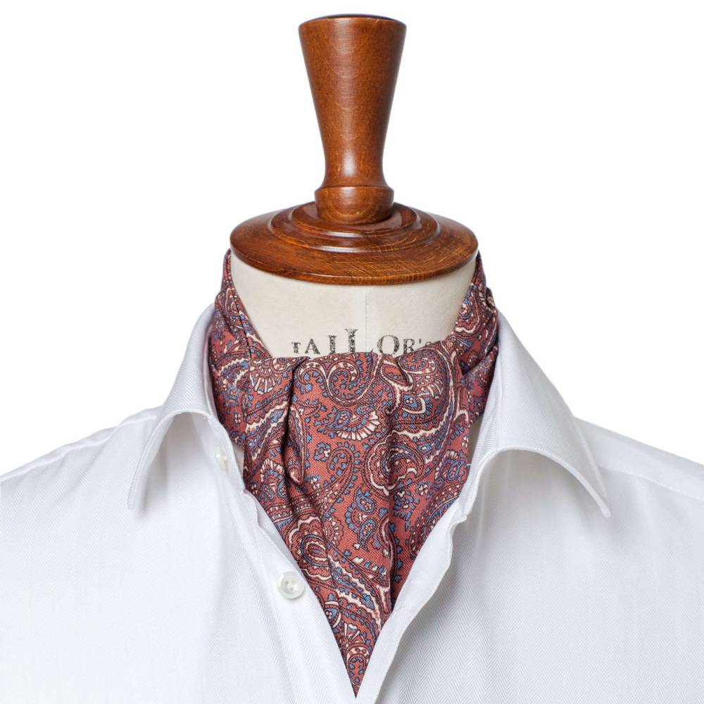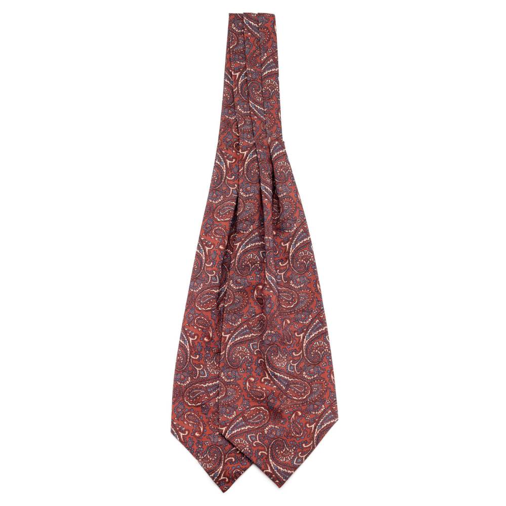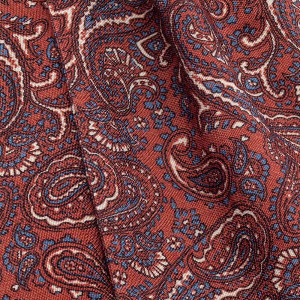 Яркий шейный платок Petronius выполнен из мягкой высококачественной шерсти с добавлением шёлка. Ткань украшена крупными узорами «пейсли». Все операции: от выкройки до окончательной стяжки по центру, выполнены руками нескольких ремесленников в мастерской Petronius в Милане. Больше 80 лет в этом семейном ателье занимаются пошивом роскошных аксессуаров из отборных натуральных тканей. Продукция Petronius представлена в старейших бутиках и универмагах мира, среди которых Barney's и Bergdorf Goodman в Нью-Йорке.