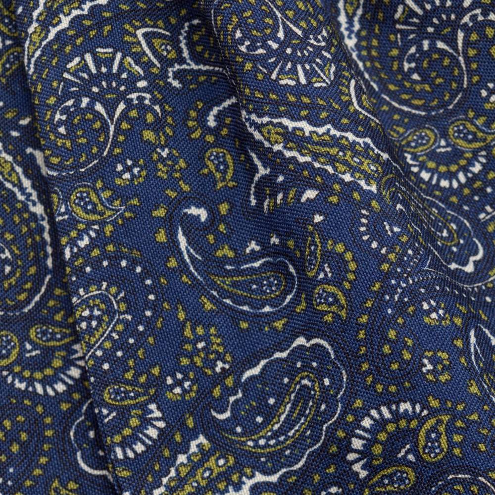 Яркий шейный платок Petronius выполнен из мягкой высококачественной шерсти с добавлением шёлка. Ткань украшена крупными узорами «пейсли». Все операции: от выкройки до окончательной стяжки по центру, выполнены руками нескольких ремесленников в мастерской Petronius в Милане. Больше 80 лет в этом семейном ателье занимаются пошивом роскошных аксессуаров из отборных натуральных тканей. Продукция Petronius представлена в старейших бутиках и универмагах мира, среди которых Barney's и Bergdorf Goodman в Нью-Йорке.