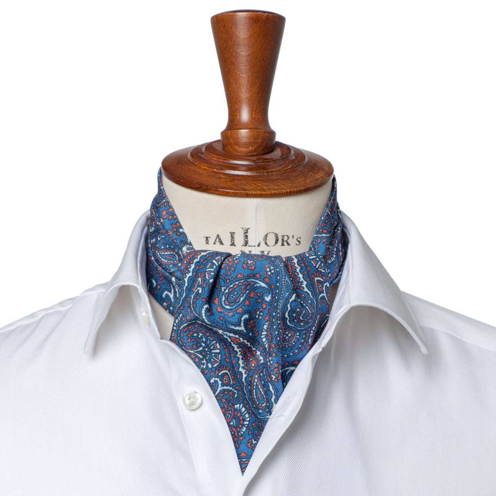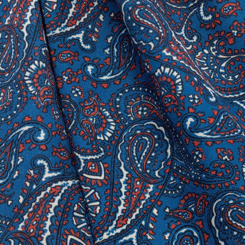 Яркий шейный платок Petronius выполнен из мягкой высококачественной шерсти с добавлением шёлка. Ткань украшена крупными узорами «пейсли». Все операции: от выкройки до окончательной стяжки по центру, выполнены руками нескольких ремесленников в мастерской Petronius в Милане. Больше 80 лет в этом семейном ателье занимаются пошивом роскошных аксессуаров из отборных натуральных тканей. Продукция Petronius представлена в старейших бутиках и универмагах мира, среди которых Barney's и Bergdorf Goodman в Нью-Йорке.