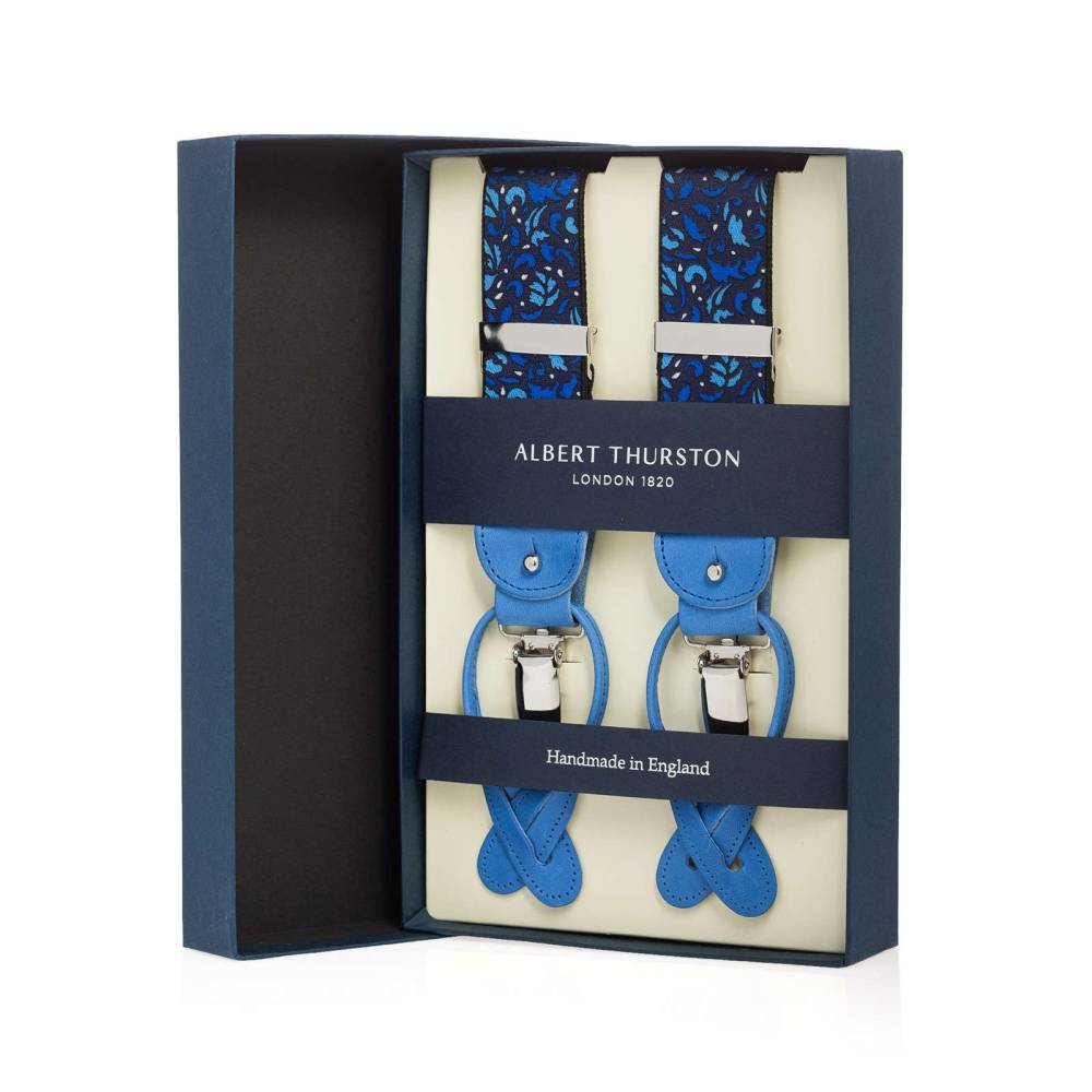 Классические Y-образные подтяжки легендарного английского бренда Albert Thurston. Лента выполнена из хлопка в сочетании с эластаном, а петли и спинка – из прочной натуральной кожи. Подтяжки можно крепить при помощи петель, если брюки имеют пуговицы, либо при помощи металлических зажимов. В комплект входит набор из 6 пуговиц.