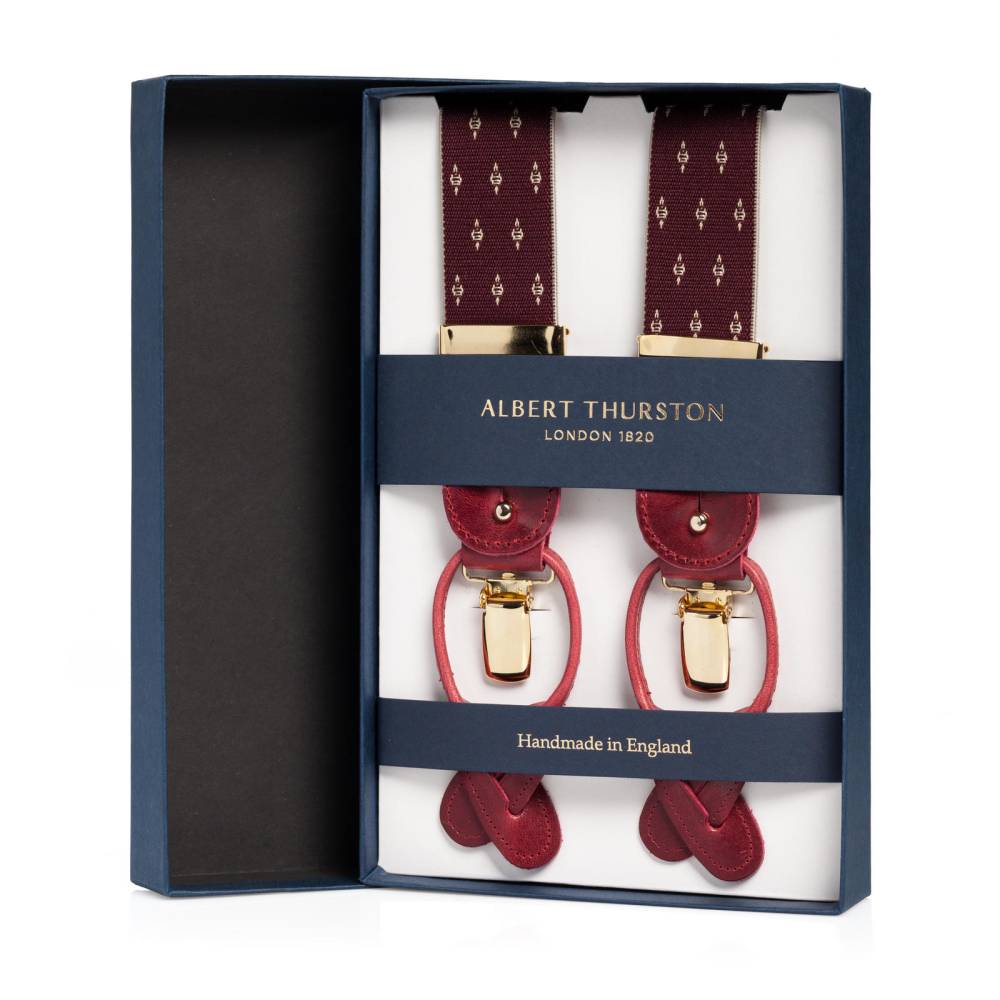 Классические Y-образные подтяжки легендарного английского бренда Albert Thurston. Лента выполнена из хлопка в сочетании с эластаном, а петли и спинка – из прочной натуральной кожи. Подтяжки можно крепить при помощи петель, если брюки имеют пуговицы, либо при помощи металлических зажимов. В комплект входит набор из 6 пуговиц.