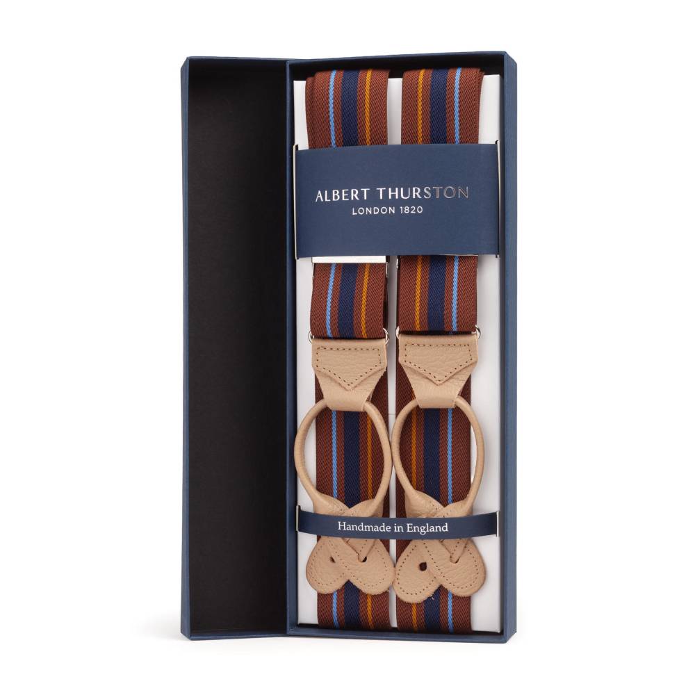 Albert Thurston — известный британский бренд, который на протяжении 200 лет остается синонимом качества и стиля мужских подтяжек. С момента основания в 1820 году компания является пионером в своей отрасли, сочетая изысканное мастерство с непреходящей элегантностью.