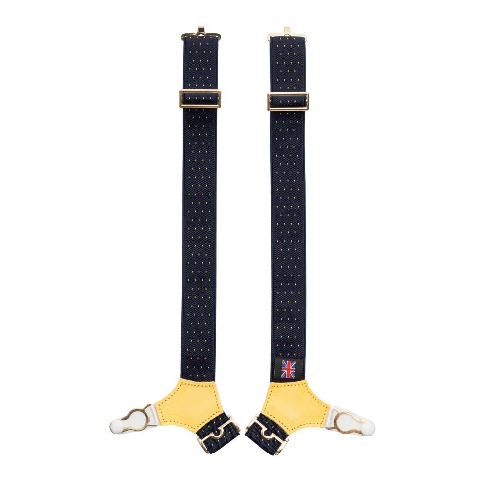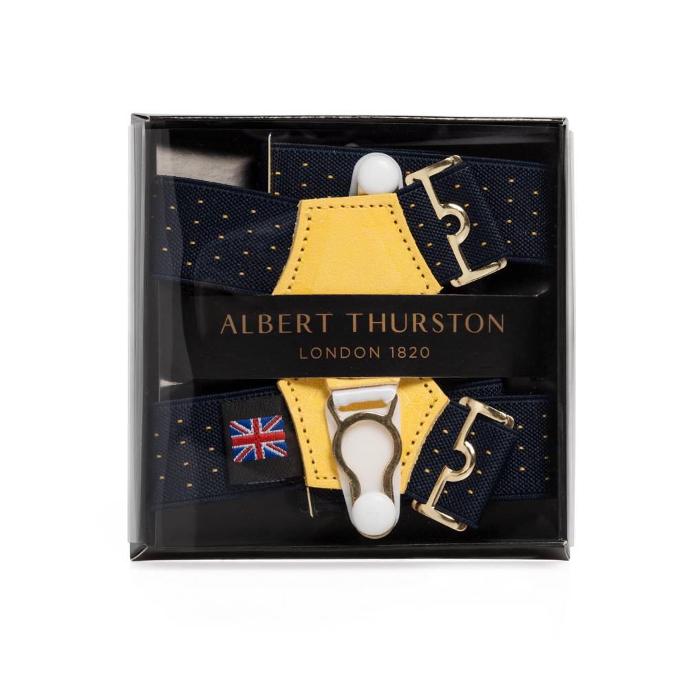 Классические подтяжки для носков легендарного английского бренда Albert Thurston. Лента выполнена из хлопка в сочетании с эластаном. Вставки из прочной натуральной кожи.