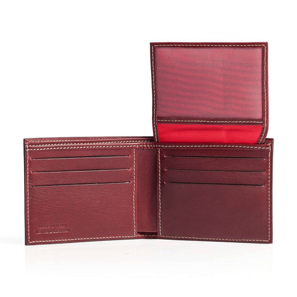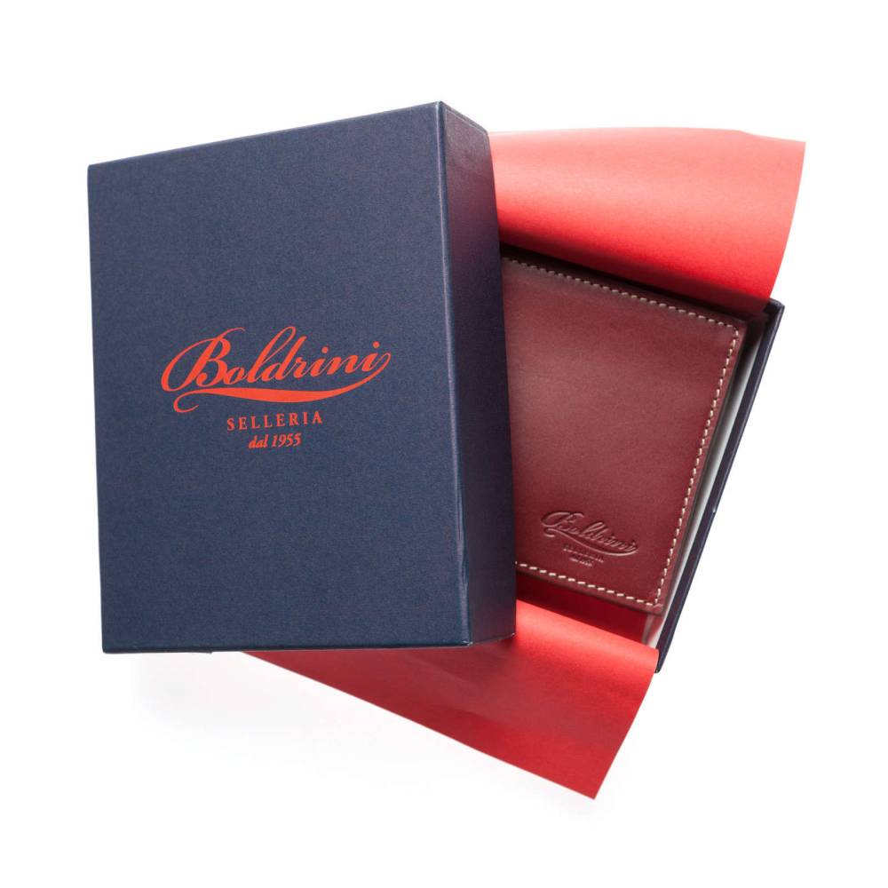 Портмоне Boldrini Selleria из гладкой телячьей кожи бордового цвета. Модель с восьмью отделениями для банковских карт и визиток, двумя внутренними отсеками, сетчатым холдером для автомобильных прав и двумя отделениями для купюр. Внутри подкладка из плотного ярко-красного текстиля. Внешняя сторона декорирована тиснением в виде логотипа бренда.