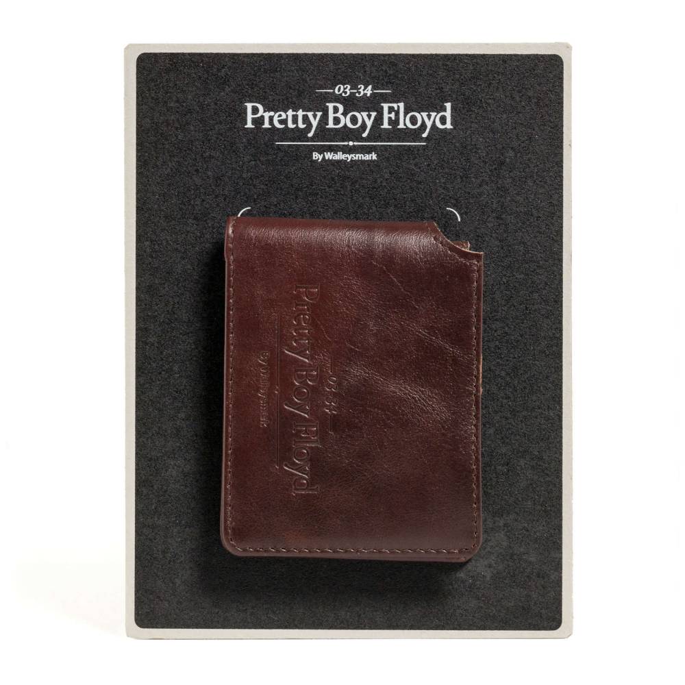Компактное портмоне Pretty Boy Floyd из мягкой телячьей кожи тёмно-коричневого цвета. При создании портмоне дизайнеры бренда Walleysmark вдохновлялись стилем американского гангстера Чарльза Артура Флойда – Красавчика Флойда. Он прославился тем, что ограбил более 50 банков и во время налётов уничтожал ипотечные документы, освобождая семьи от долговой ямы в годы Великой депрессии. На гангстерский стиль намекает срез на торце, выполненный для демонстрации верхнего края купюры. В откидном кармане можно хранить фотографии.